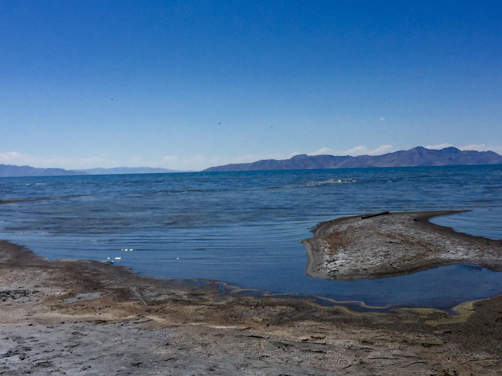 盐湖非常开阔,远远望去有碧海蓝天的感觉,走过沙滩穿过沼泽地,空气中弥漫的腥臭味越来越浓,停留在湖边,黑压压的飞虫立刻向我包围起来,联想到了高中英语课本中描述的盐湖城蝗虫,此景点只可远观不可亵玩焉!