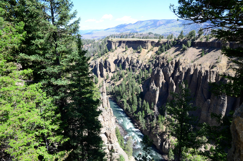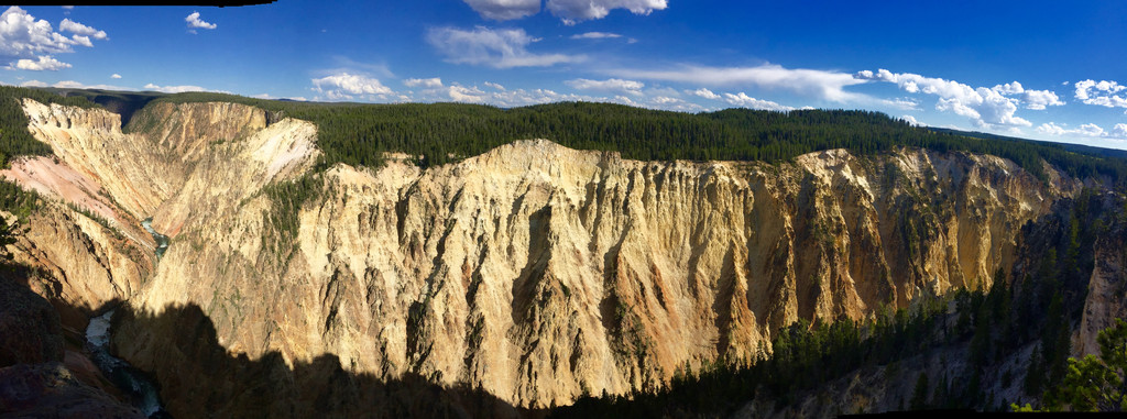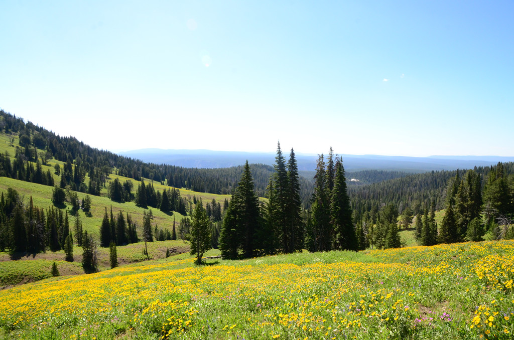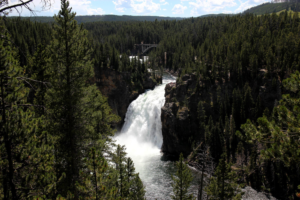 公园拥有大片的原始森林,蛇河、黄石河、黄石湖贯穿其中,丰富的水量通过黄石大峡谷汹涌而下,形成巨大的瀑布群。车辆穿越森林,沿途的湿地草原中野花遍地,无论何种角度相遇,都是构图精美的巨幅风景画!