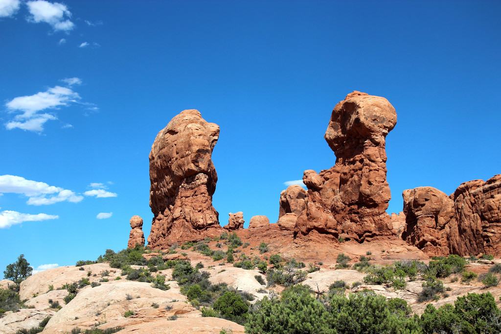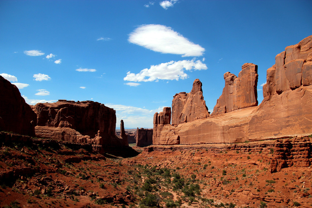拱门国家公园,海洋盐层经过上亿年的地壳变迁和天然风化,形成世界上规模最大的拱门状自然砂岩集中地,身临其境时却忍不住怀疑自己是否站在地球上。公园里有大小拱门2000多个,经典的有平衡石(Balance Rock),双窗拱门(Double Arch)和精致拱门(Delicate Arch)—犹他州标志。