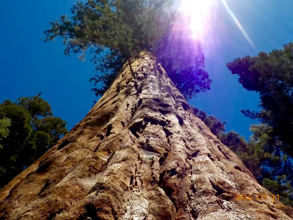 红杉国家公园是美国历史上第三个国家公园,也是现存第二古老的公园(第一是黄石公园)。这里生活着许多几千岁,二三十层楼高的巨杉树,其中的"谢尔曼将军树"是世界第一大的生物体,人称"世界爷"。在他们面前,在自然界面前,人类显得那么渺小。