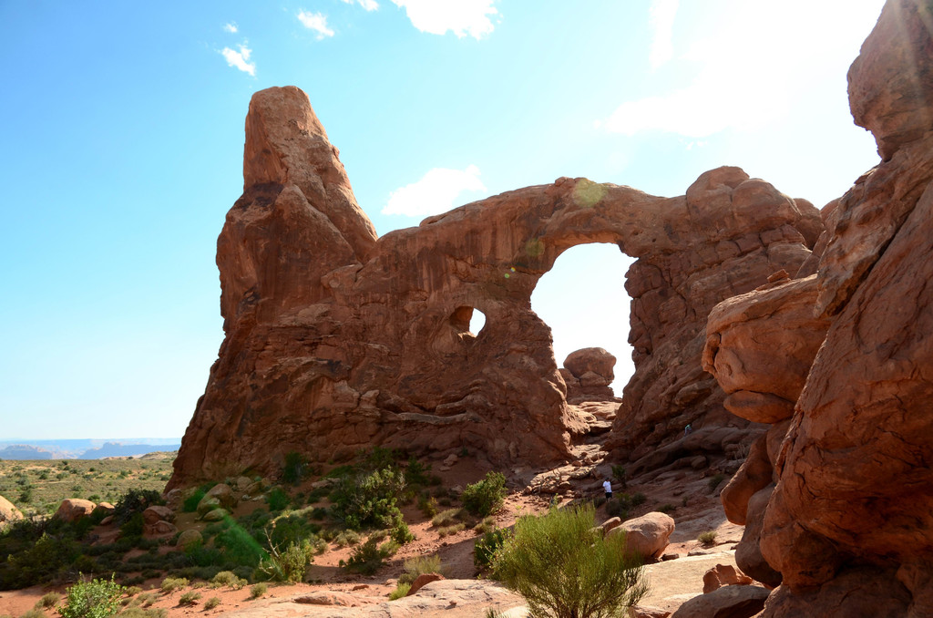 精致拱门不像其他拱门,它藏在巨石之中,遗世独立于石山的顶峰,两面都是绝壁,名副其实的成为了犹他州的标志。