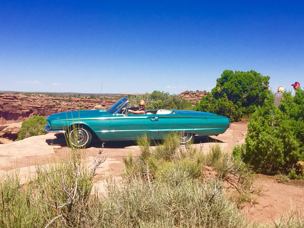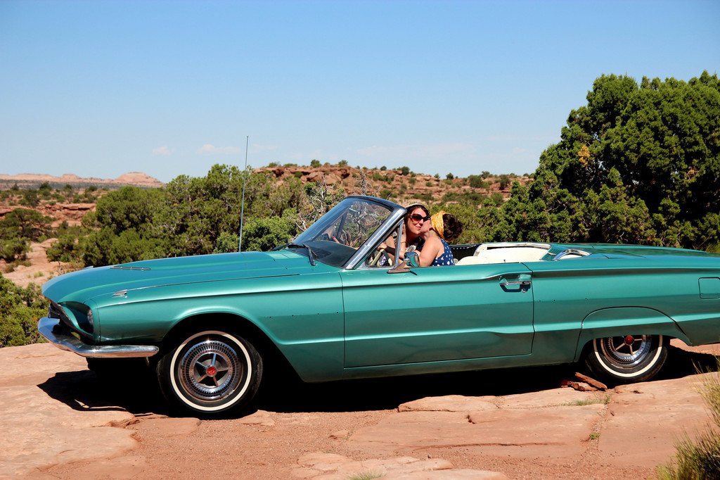 景点高处巧遇见了二位异国美女与66年绿色雷鸟,此情此景与末路狂花剧照有了100%的吻合。