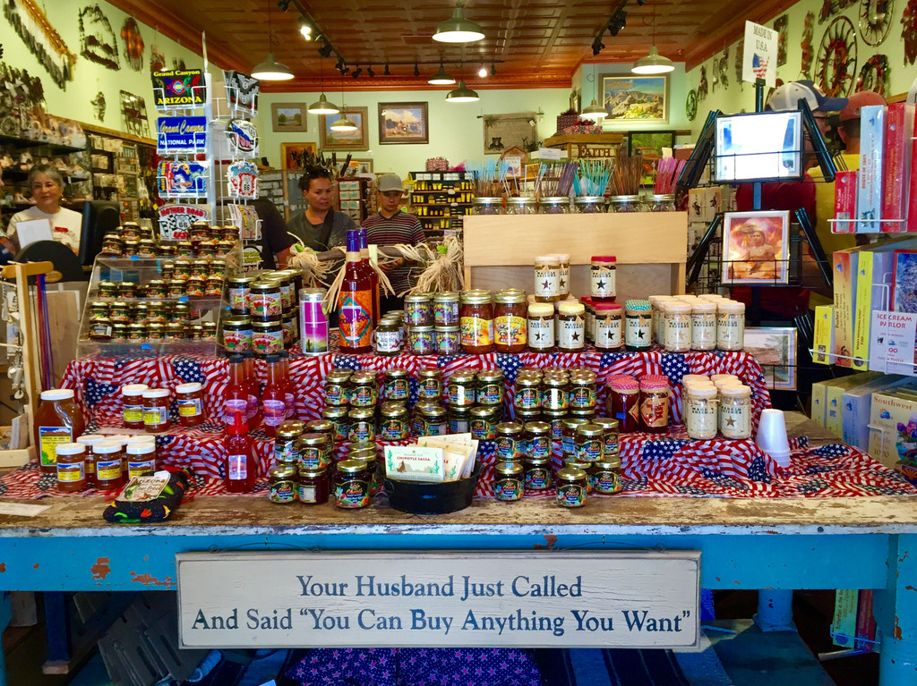 在礼品店里我发现了一句所有女人都喜欢听的标语: Your husband just called and said " you can buy anything you want"