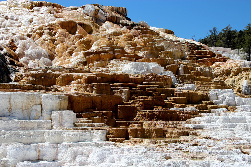 1.高塔瀑布(Tower Fall) 2. 猛犸温泉(Mammoth Hot Spring) 3.气孔喷泉(A Fumarole) 4.诺里斯间歇喷泉(Norris Geyser Basin)
