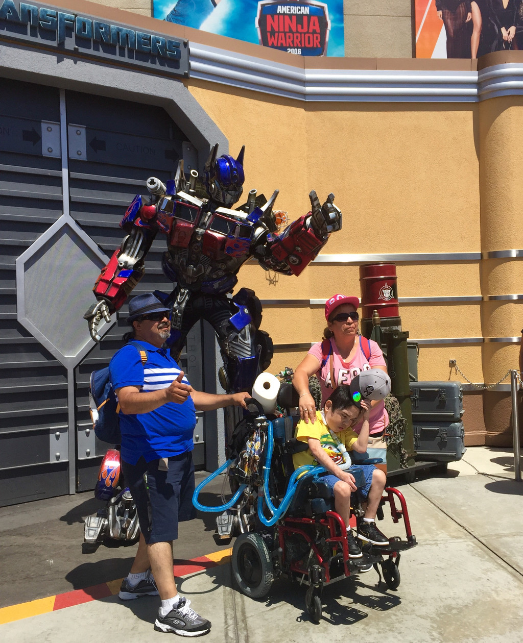 变形金刚项目排队一个半小时后还是长路漫漫、前路未明,只好放弃了,留了点小遗憾,门口的这一幕:Transformers, the Hero of Americans