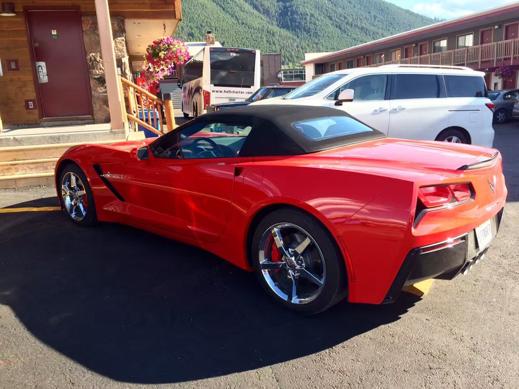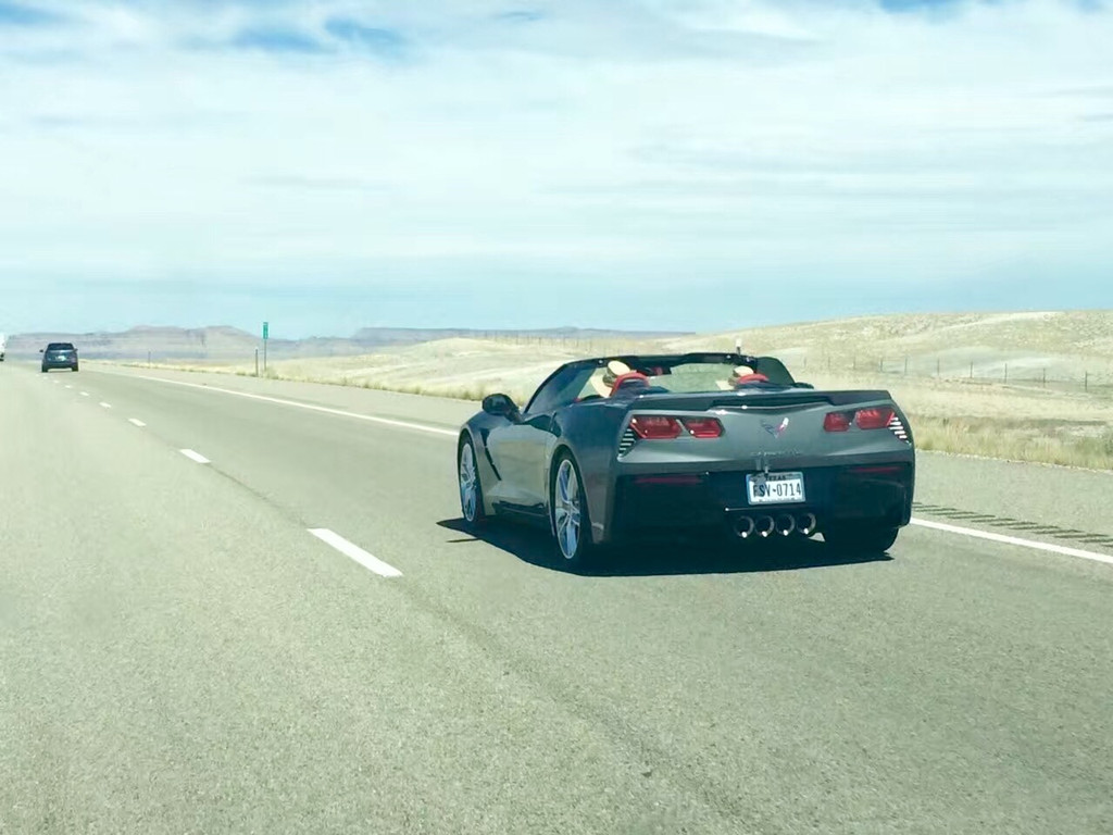 3: 进入爱达华州34号公路,路上遇到一对老夫妻开着Corvette敞篷,戴着牛仔帽,老人家修剪了很整洁的山羊胡,精神矍铄!后面又遇到了三辆各种颜色的Corvette,在租车公司里都摆着好几辆,看来这款车在当地颇为流行。