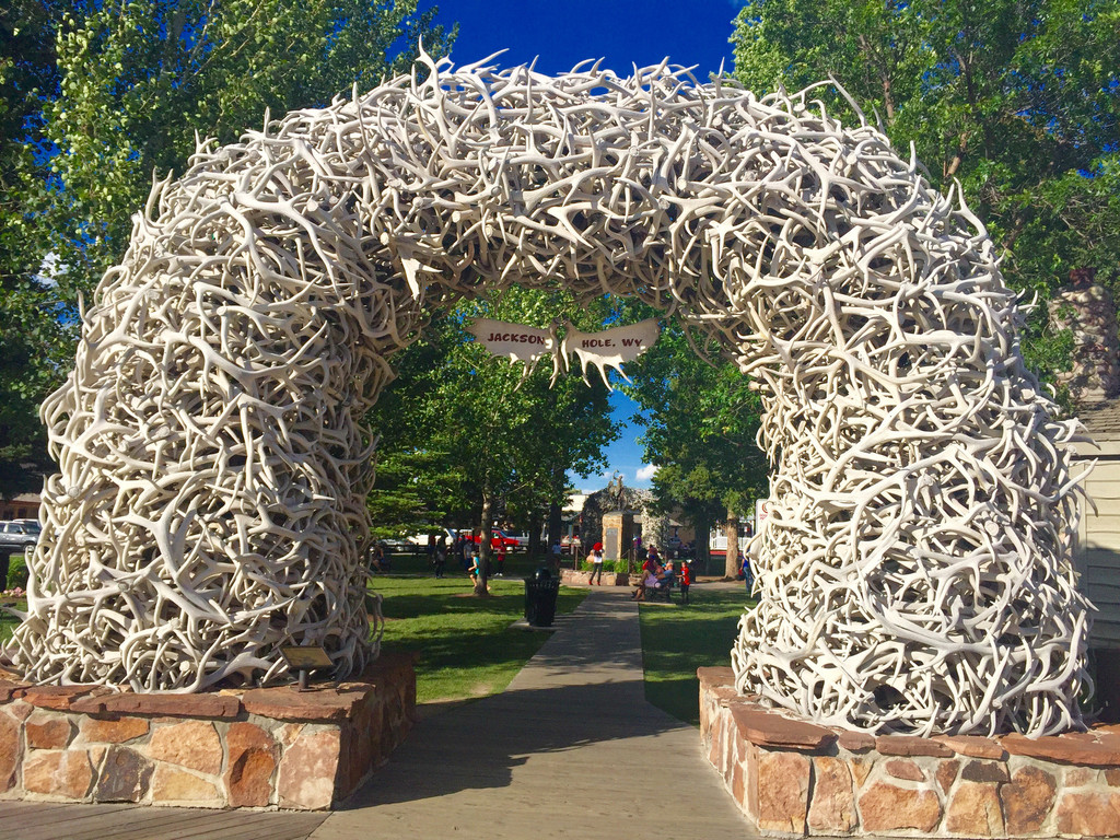 小镇的中心是鹿角公园(Antler Park),公园有四个用麋鹿角堆积起来的鹿角门而闻名。据说每年寒冬来临,黄石公园的麋鹿群便会迁徙到国家麋鹿保护区过冬,来年春天,途经的公鹿会自然脱落鹿角,再长出一副新的。这些脱落的鹿角,便被用来搭建和装饰公园的大门,鹿角门也成为了杰克逊小镇的象征。