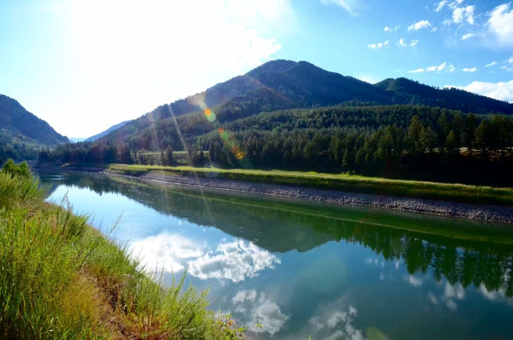 博兹曼离加拿大边境不到200公里,一路上草原、牧场、小镇、溪流、树林、高山不断交替驶过,这里的温度异常低,车载温度显示7:34AM室外温度35华氏度(相当于2摄氏度),相对于高温酷热的七月天是个避暑的好地方!