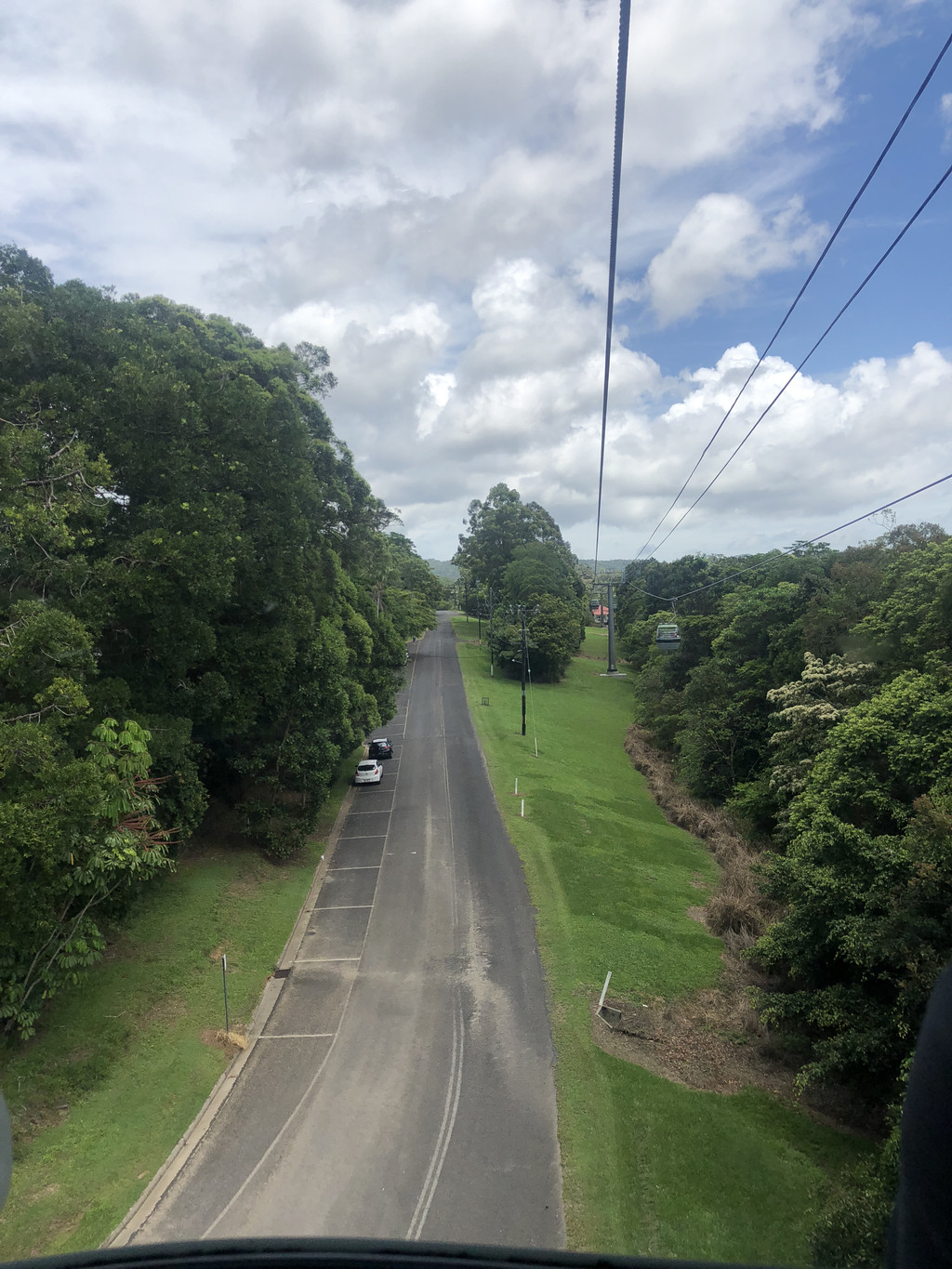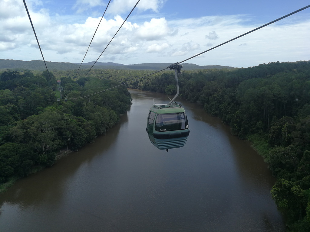 凯恩斯热带雨林是号称自恐龙时代保留下来的原始雨林,由于澳洲是独立于其他六大洲的地区,所以当时的环境变化没有对这块雨林造成太大影响。雨林的终点是名字叫库兰达的一个小镇,来往小镇有多种方式,可以坐公共汽车、火车或自驾,而我们选择的是最常见的旅游线路——缆车,因为只有缆车才能穿过原始雨林,并俯瞰整个雨林的面貌。