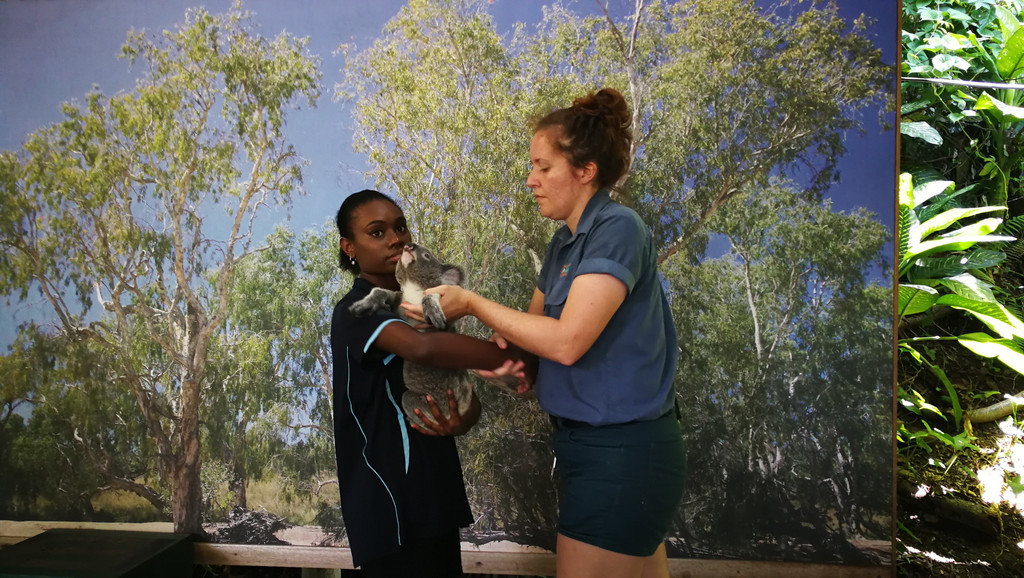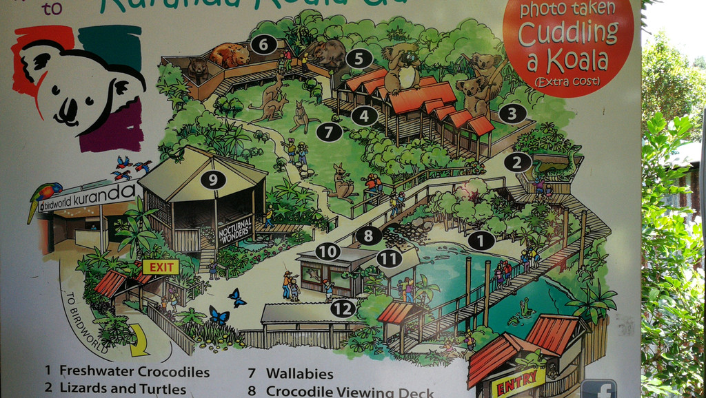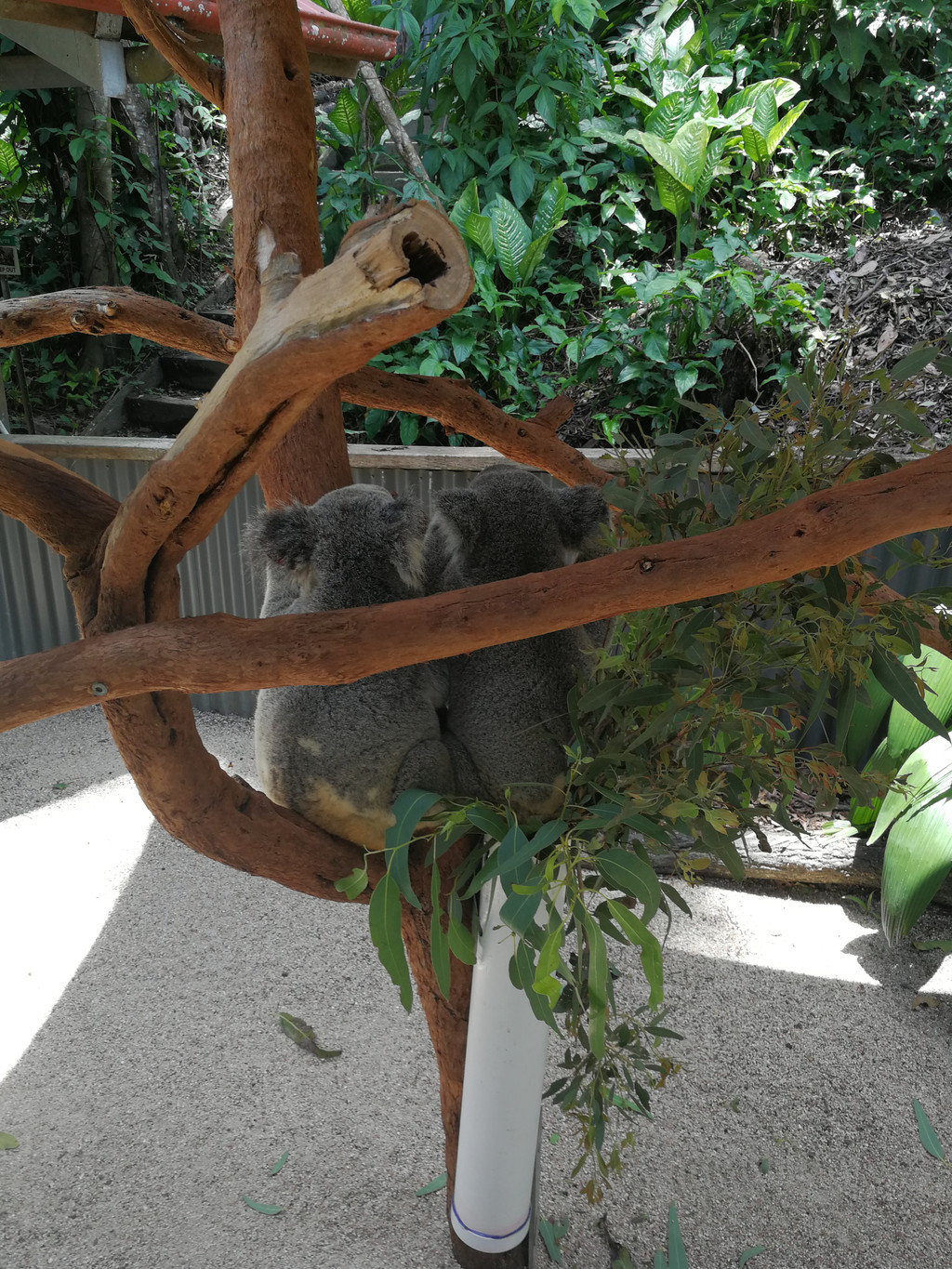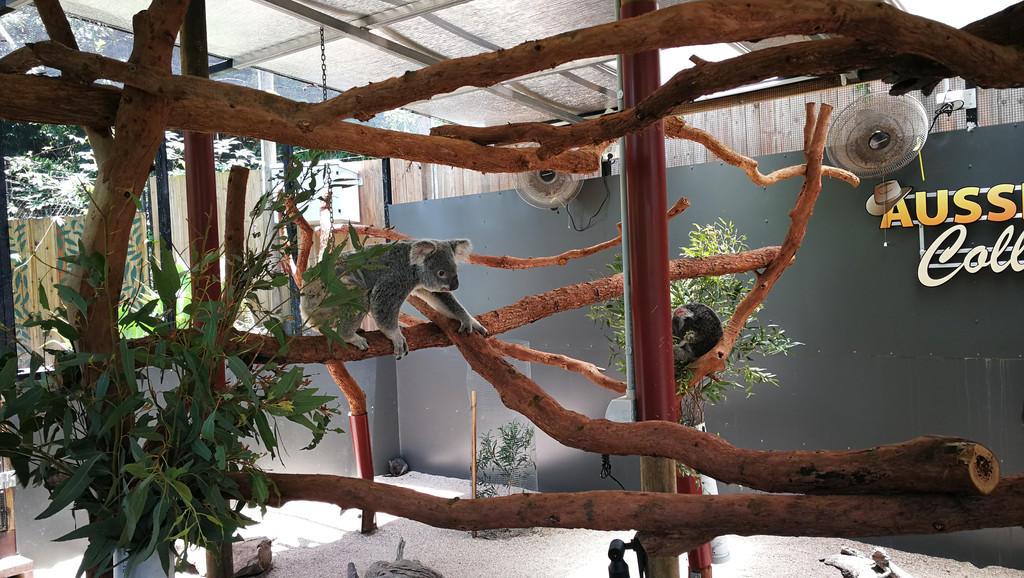 库兰达就是个小镇,里面可玩的东西不多,主要的项目是旅游手工艺品市场(其实就是义乌小商品市场),午餐吃饭,以及三个小动物园——动物园、百鸟园和蝴蝶园。因为中间有2个小时的自由活动时间,而且昆州是允许抱考拉的(悉尼所在的新洲是不让抱的),所以我们就又报了一个动物园,并购买了一个抱考拉拍照票。门票是15澳,考拉照相是20澳,说实话有点坑人,动物园小的可怜,总共10分钟就能逛完。报考拉照相是20澳一个人,年龄小于12岁不能自己抱(怕摔了考拉),只能跟着一个大人照相,家庭照相好像是50澳,价格真的不便宜。考拉拍照实际上是工作人员抱着考拉放在你身上,只有让考拉觉得你是一棵桉树,他才能安心的配合你拍照,所以整个过程非常缓慢,不配合的事情时有发生,好在游客不多,如果放在平日旺季,真的要做好等一个小时以上的准备。