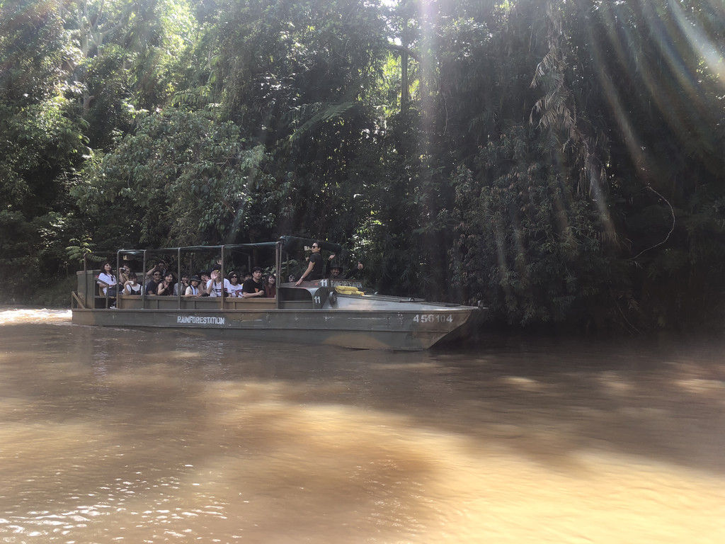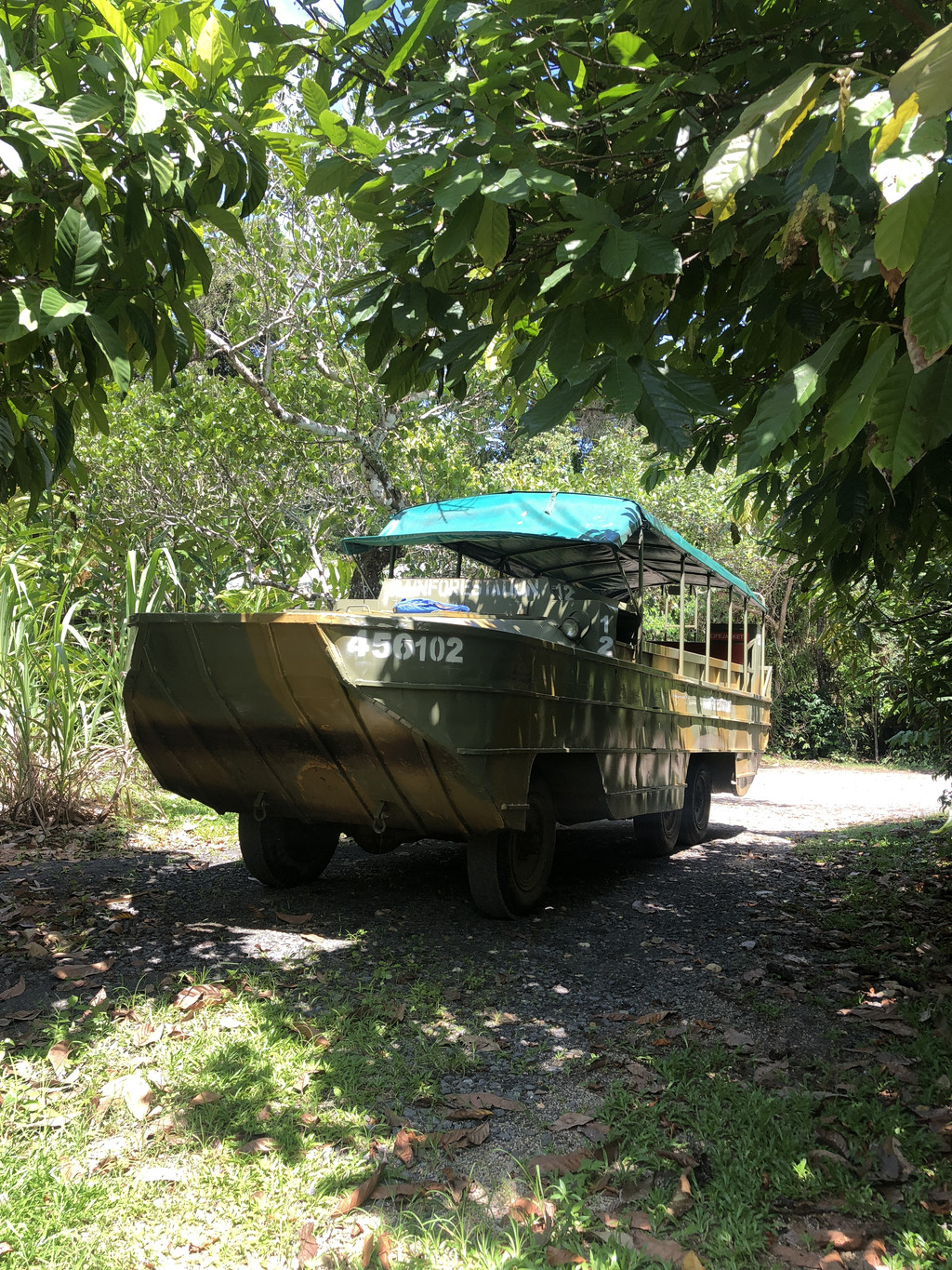下午集合后,我们集中参观了一个雨林湿地公园,其中最有意思的旅游特色是乘坐两栖登录艇,这些登陆艇是二战时候美军留下的产物,听导游介绍,很多日本团来也都坐这个,感受下70年前敌人的武器,真是非常有意思。开艇的公园管理员一副动植物科学家的感觉,看着就有亲近感,而且全程介绍,遇到特有的动植物还会随时停车给我们指出来,我们遇到了一条蛇还有一个伪装在叶子上的某种昆虫,如果不指出来我们是绝对看不出来的。