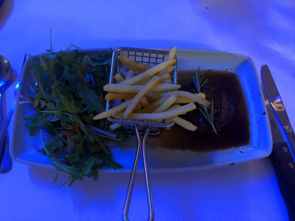 唯一一点稍需注意的就是,酒店的东南亚餐厅。第一天晚上到了凯恩斯有点下雨,酒店前台就推荐可在酒店用餐,是专门亚洲口味的餐厅。结果,实际上就餐发现基本上是东南亚菜品,我的父母实际上不太吃的惯,而且价格比较贵,人均要50澳差不多。我点的酒店自养的小牛排要60澳,味道是不错但是价格确实比较高。所以吃不惯东南亚口味的以及注重经济的朋友还是不要考虑这家餐厅,网上评分后来看也不是很高(后悔应该先看看)。