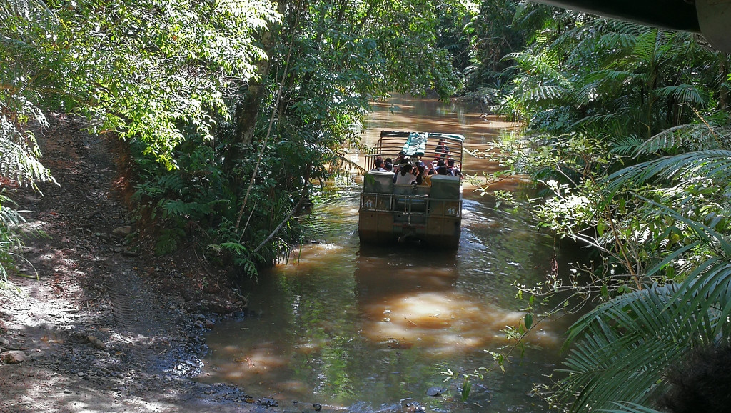 一早9点半,旅游车直接到酒店门口接上我们,导游兼司机是华人,凭着手头的资料跟我们确认了信息,之后绕过几个酒店陆续又接了些客人后就开始向热带雨林景区出发。