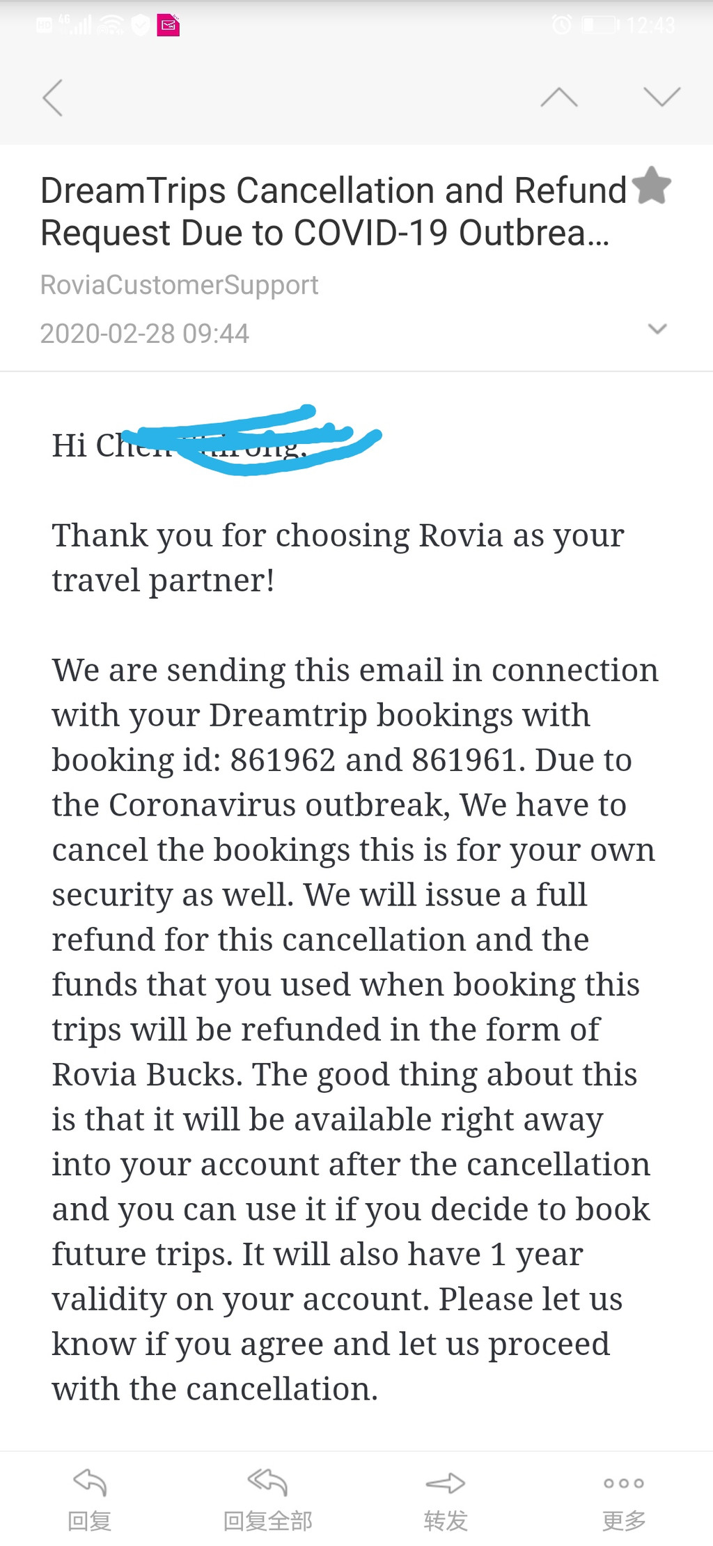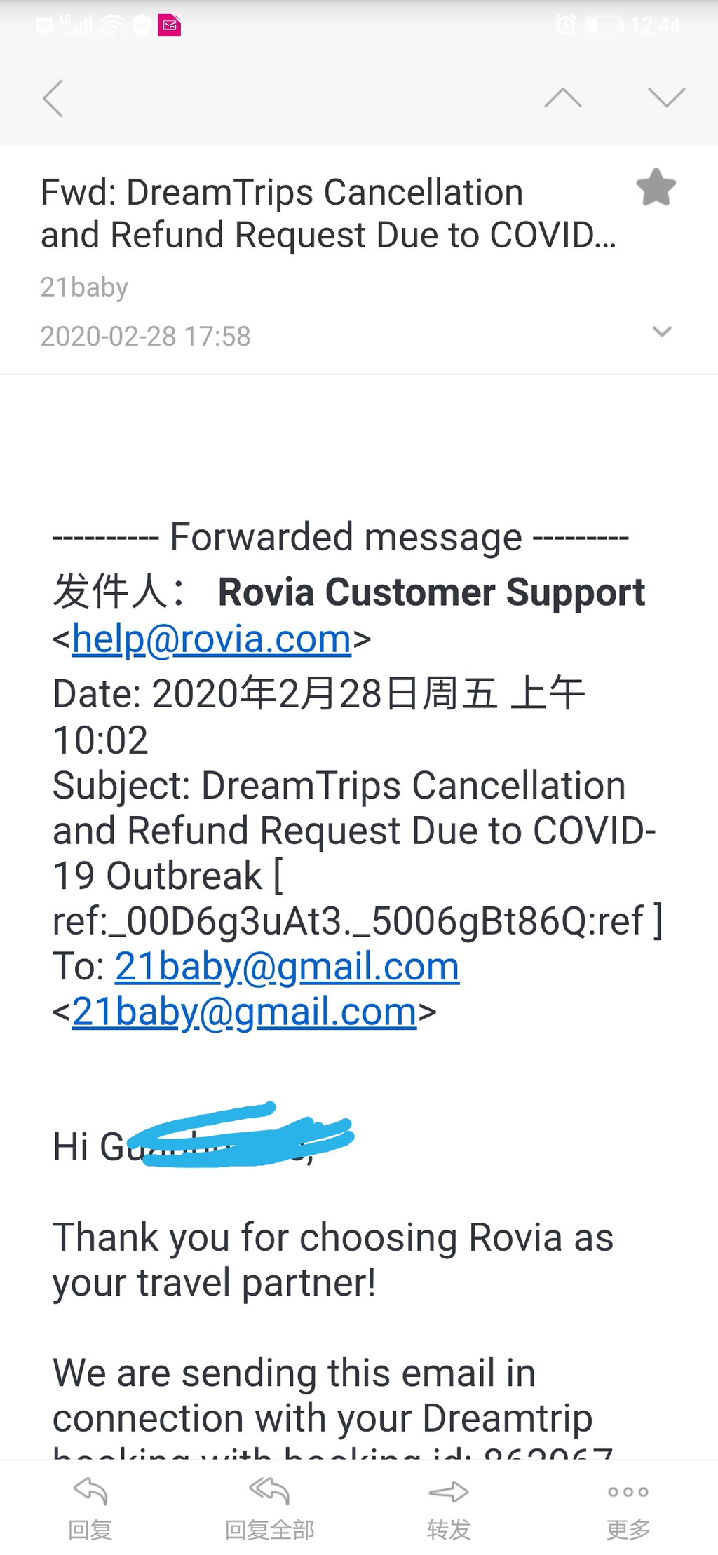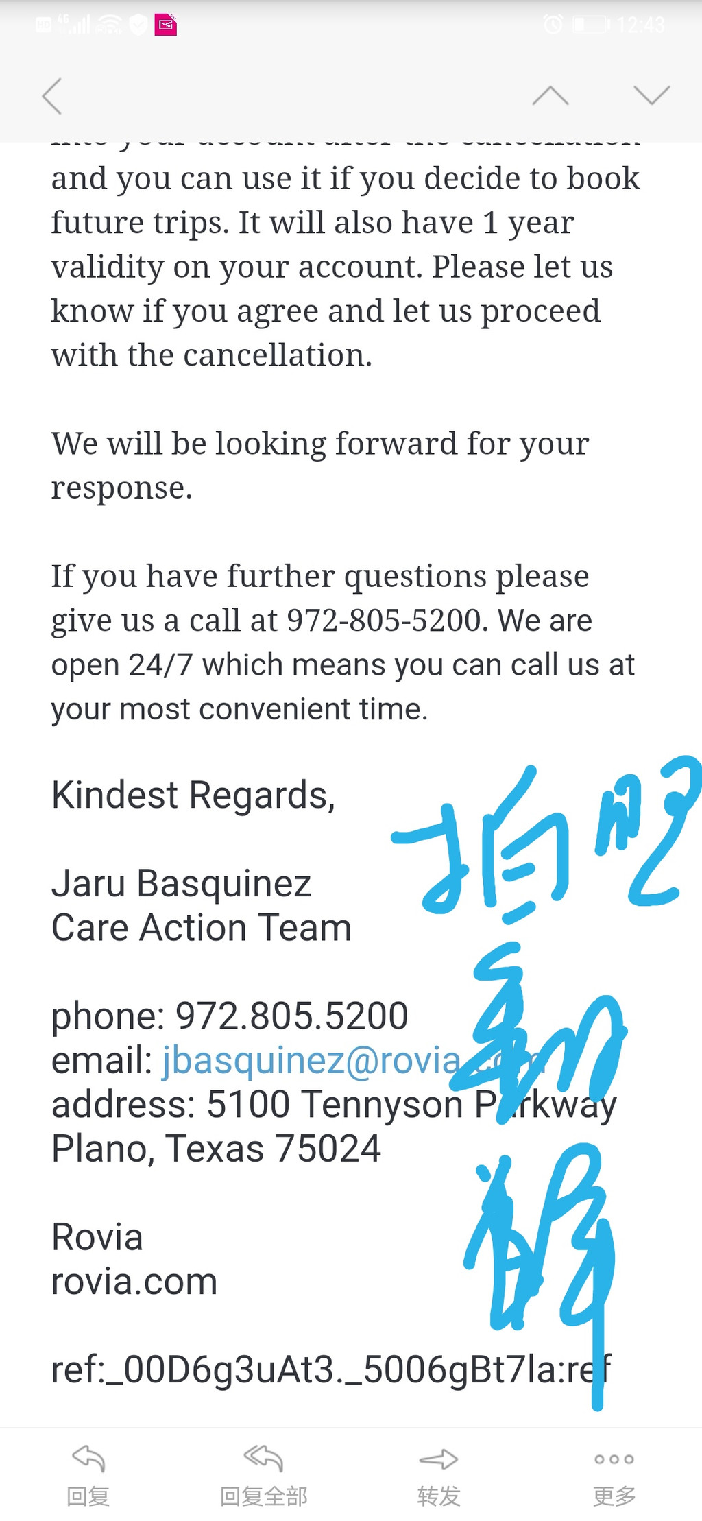 3、ROVIA公司及欧洲加威斯、瑞安廉价航空处理退款流程有点乱,并且效率极其低下哦!电子邮件、佐证材料、客服沟通、VIP通道····· 最终结果五花八门,历时三个多月,大部分欧洲境内机票款还在催讨中!