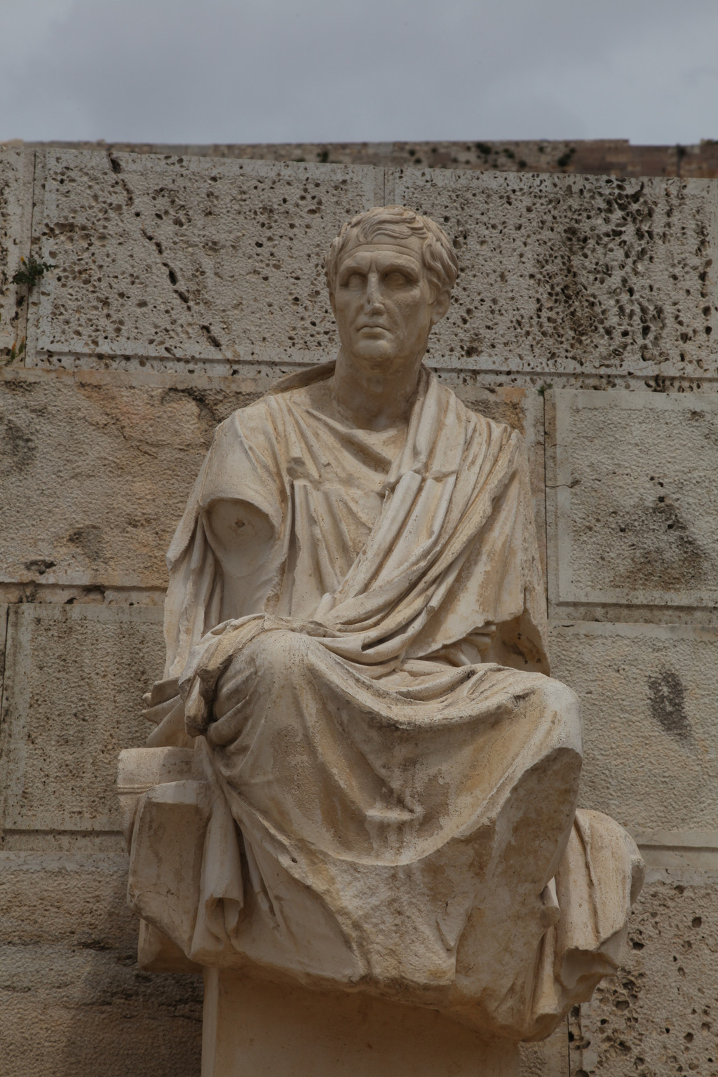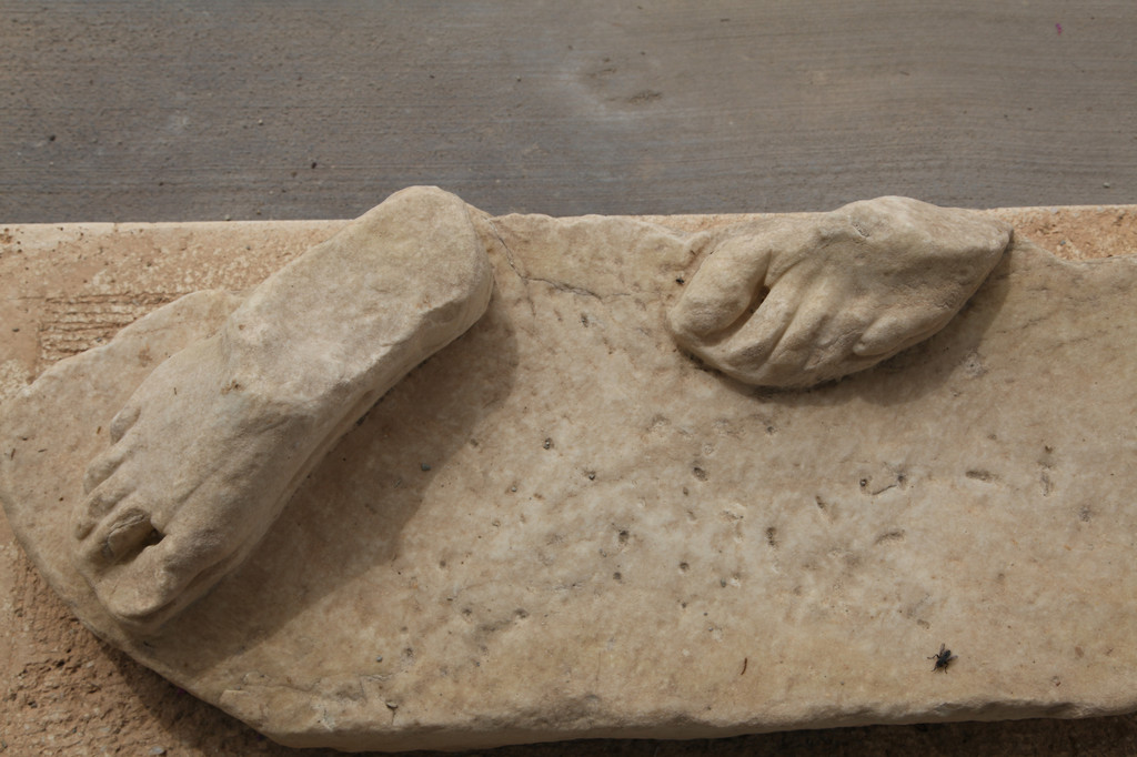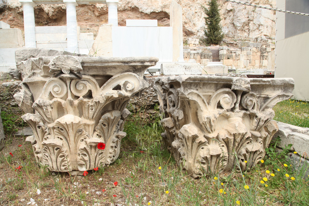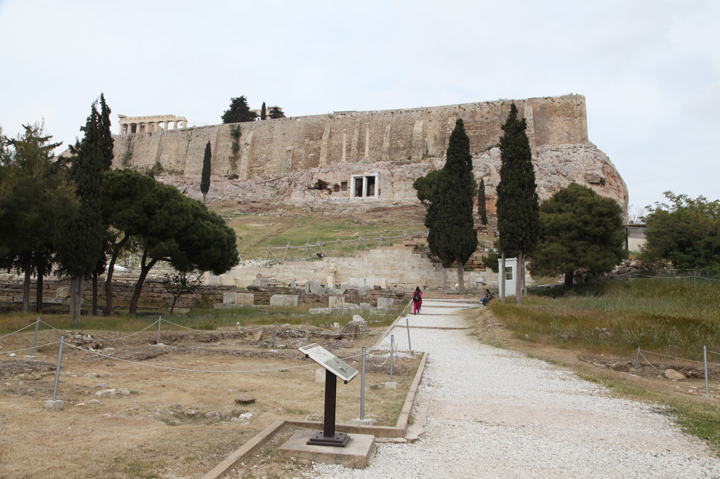 绕着雅典卫城南侧险峻的山崖,我们拾阶而上,晴朗的天空下,浩云如兰,满地花香,一路上望去都是高大的残亘断柱,分布于乱石嶙峋的山岗上,透着岁月的沧桑,闪烁出昔日灿烂靓丽的文化记忆。这些精美华贵的石刻残片,昭示着昔日卫城雍容华贵与典雅辉煌的历史。