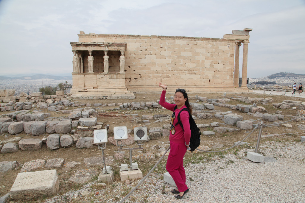 山巅微风拂面,十分惬意。我们沿着长长的石路,一路欣赏着帕台农神庙和厄瑞克赛翁神庙。帕台农神庙由当时著名建筑师伊克蒂诺斯和卡利克拉特在执政官伯里克利主持下设计,费时9年,于公元前438年完成,位于卫城最高点,体量最大,造型庄重,是卫城的中心。2500多年以来,这座白色石灰石所建的神殿,在蓝天艳阳交互辉映下,展露庄严而绮丽的风姿。
