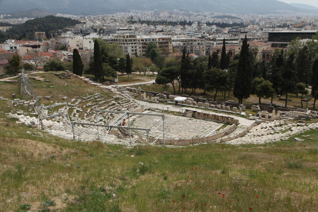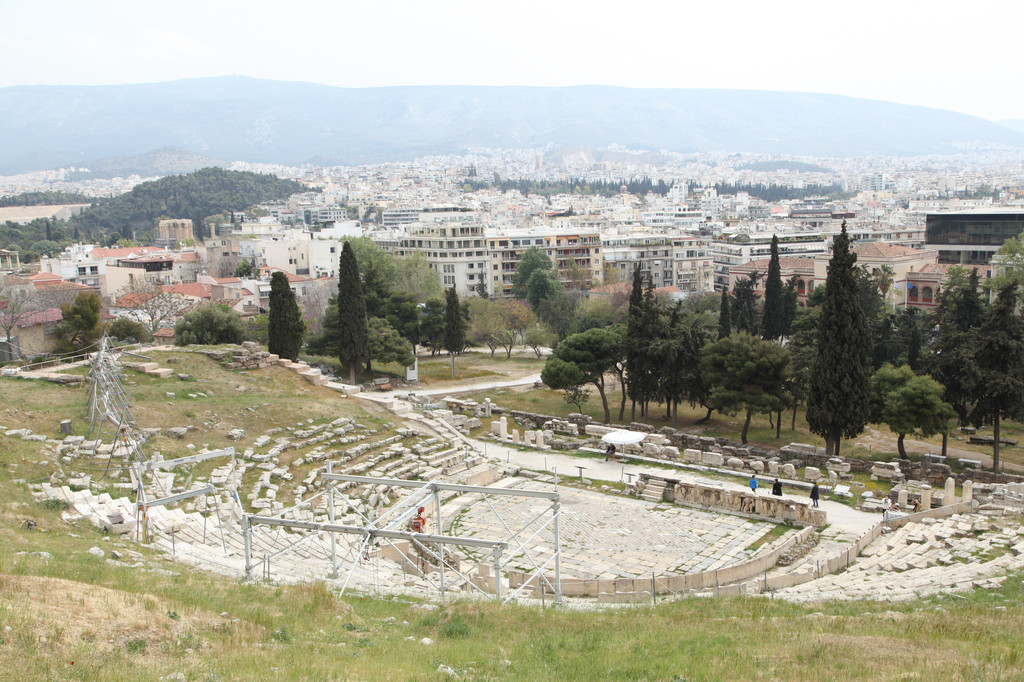 随后,我们走进一座造型别致精巧美观的盛大露天剧场——迪奥尼苏斯剧场。这座宏大的剧场,设计大气,布局精美,呈环形排列,一层层向外侧扩展开来。该剧场设有18000个座位,可容纳近2万人。其奇妙之处还在于其音响效果,在巨大的半圆形剧场的边缘,观众仍然可以和前排的观众一样清楚地听到演员轻微的叹息和撕开纸片的声音。古希腊建筑大师在运用声学原理于建筑方面的技巧,令今天的工程师赞叹不已。