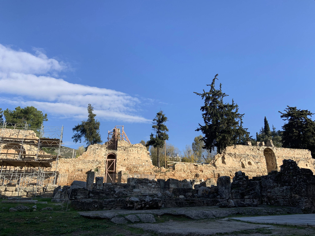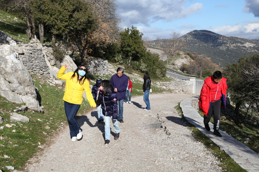 下午3:20PM,我们绕着盘山公路蜿蜒曲折地兜了一个多小时,终于顺利抵达阿波罗·伊壁鸠鲁神庙。购票进入后,我们先去看看神庙的宫殿建筑。