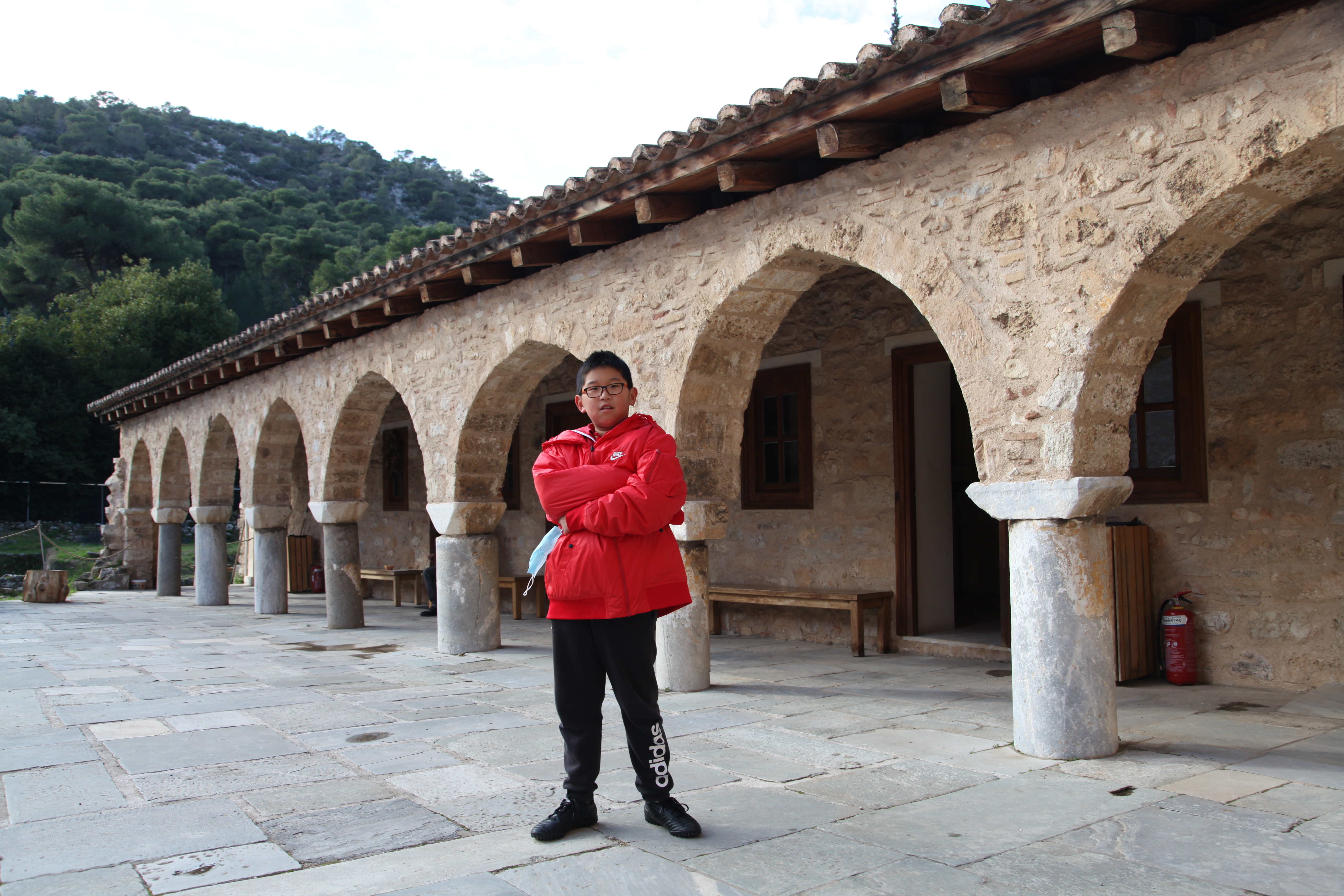 D01(23/12):路线:Home——阿提卡的拜占庭达芙妮修道院(Byzantine Monastery of Daphni)——巴塞的阿波罗·伊壁鸠鲁神庙(Temple of Apollo Epicurius at Bassae of Phigaleia)——奥林匹亚(Olympia),入住奥林匹亚的酒店。