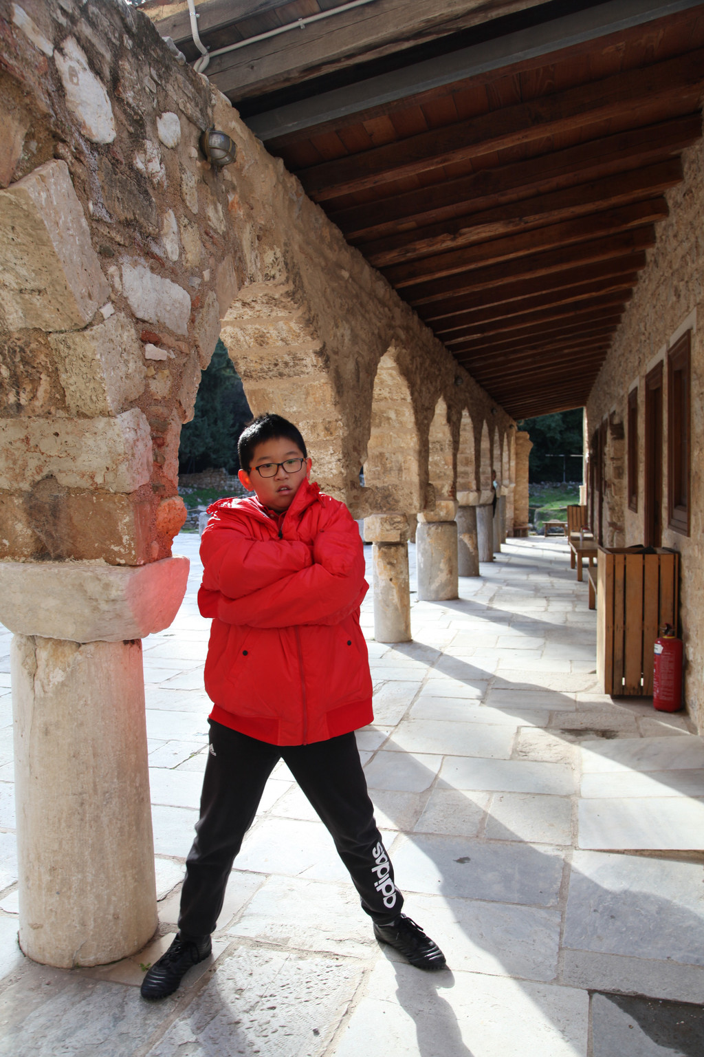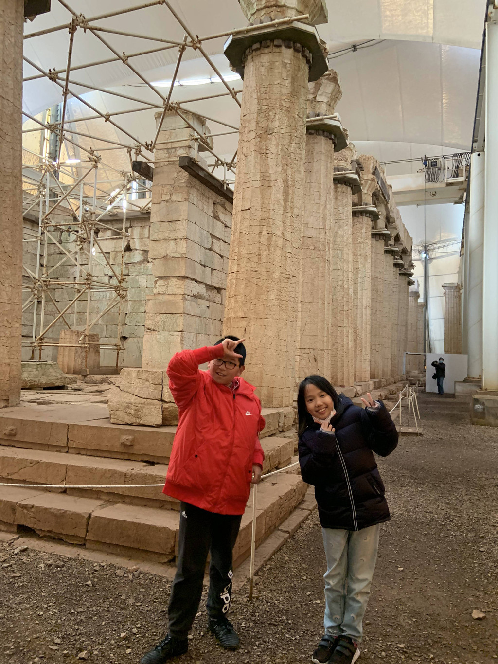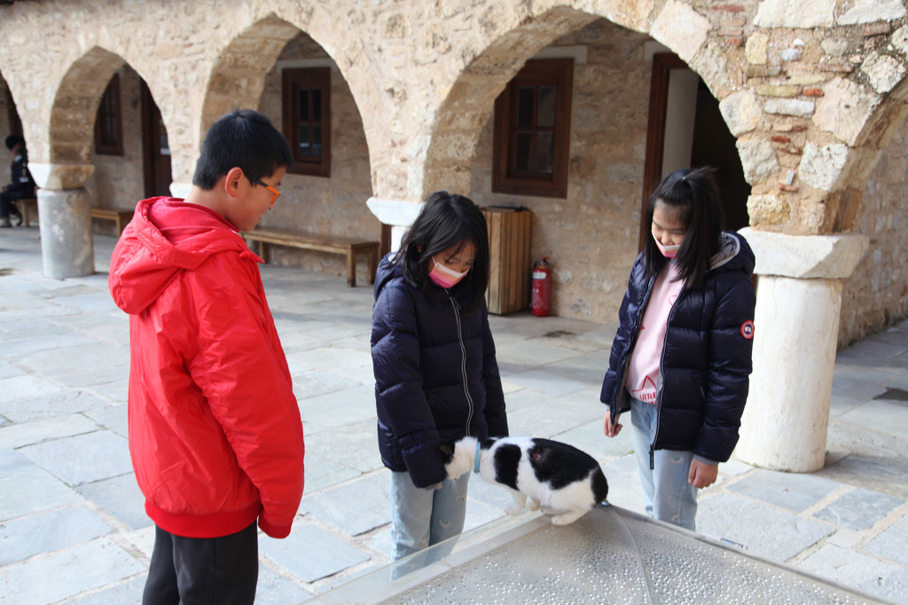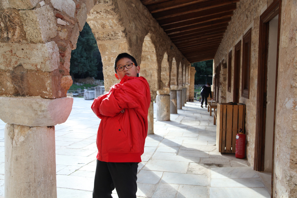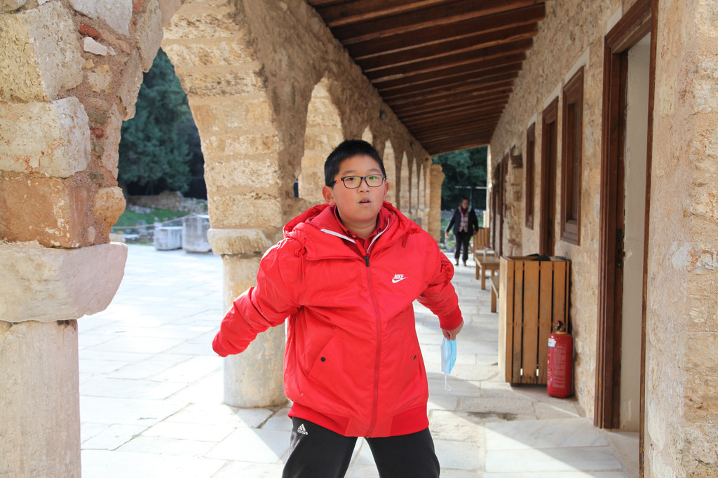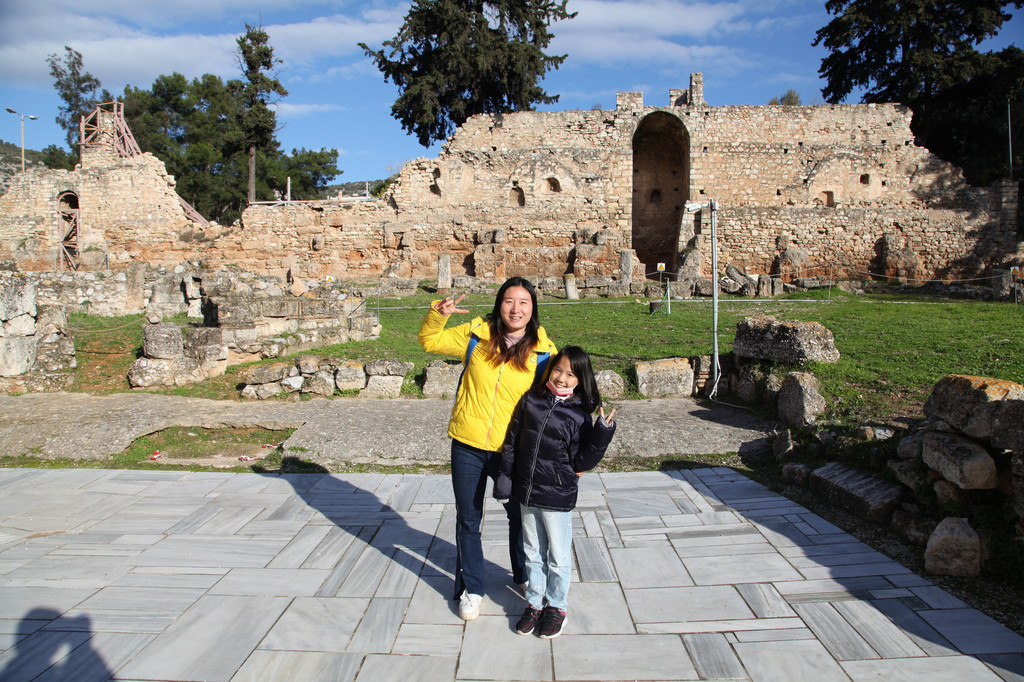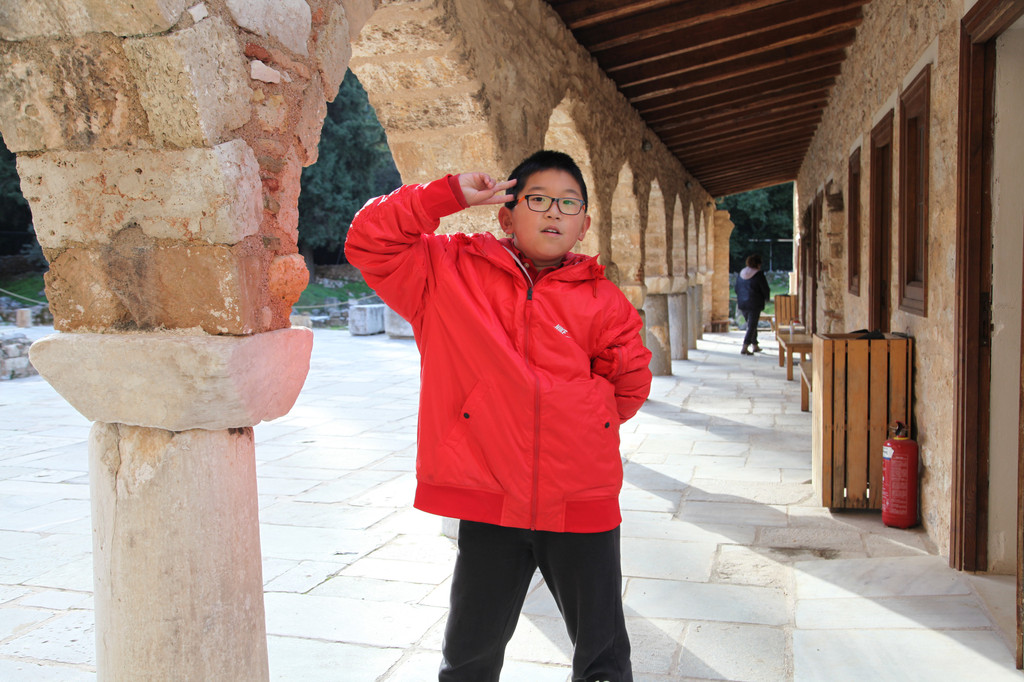第二天上午约9点,我们与朋友驱车朝着雅典的西南方向进发,正式开启了此次走进希腊的世界文化遗产系列之旅。本以为去看那些博物馆和石头城等古迹,会让孩子们感到很枯燥,结果却十分惊喜,孩子们不仅喜欢看那些稀奇古怪的各式远古文明的器物,更展现出孩子们随意变通,容易接纳新鲜事物的天性。