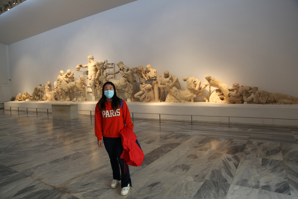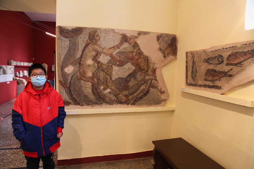 我们参观了考古挖掘出的石刻艺术雕像,也进入教堂观瞻那些悠久亮丽的壁画。那根唯一的原始古物爱奥尼柱也让我们感慨万千,毕竟这是距今1500多年的梦幻记忆。