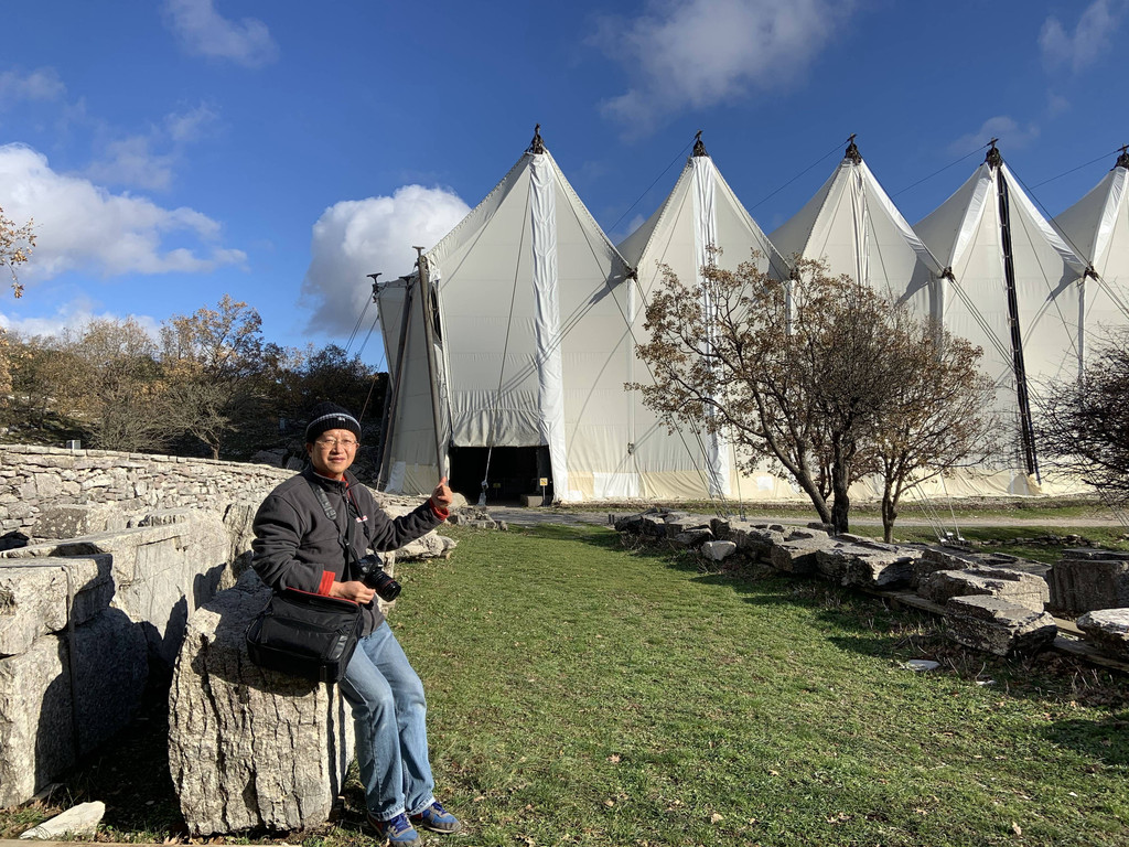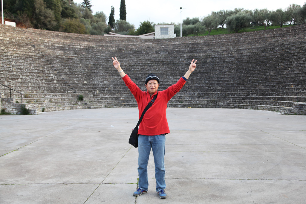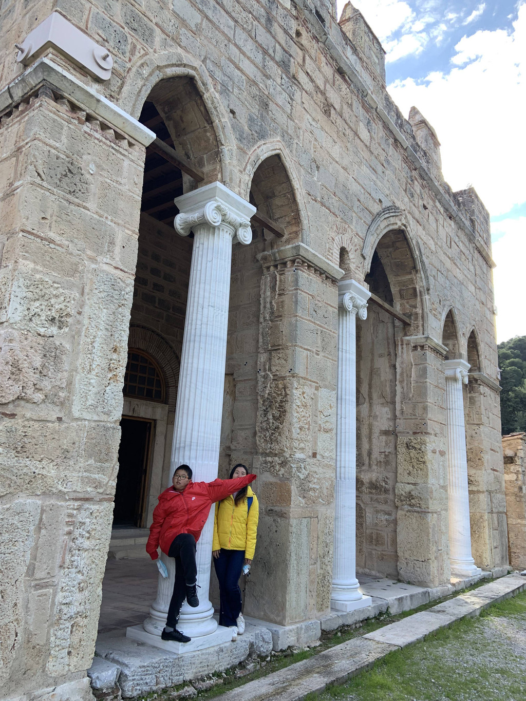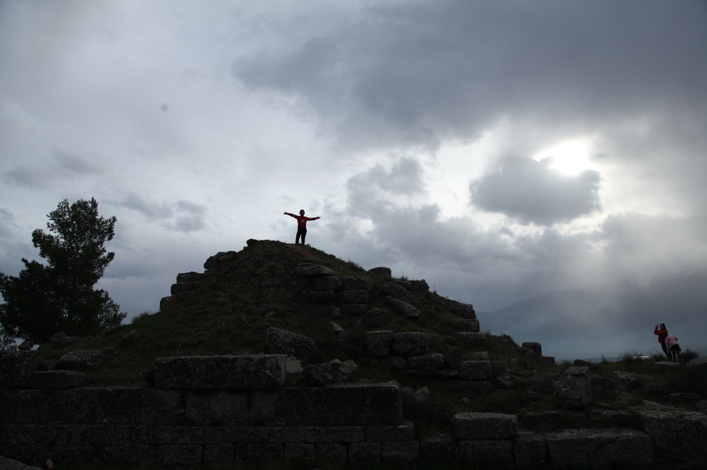 Keith躲在那根古代阿波罗神庙残留的古迹——爱奥尼柱廊前,凹出各种造型,让我拍照留影。游玩40分钟后,我们驱车沿着科林斯方向的E94高速路,转道E65高速,奔着巴塞的阿波罗·伊壁鸠鲁神庙而来。