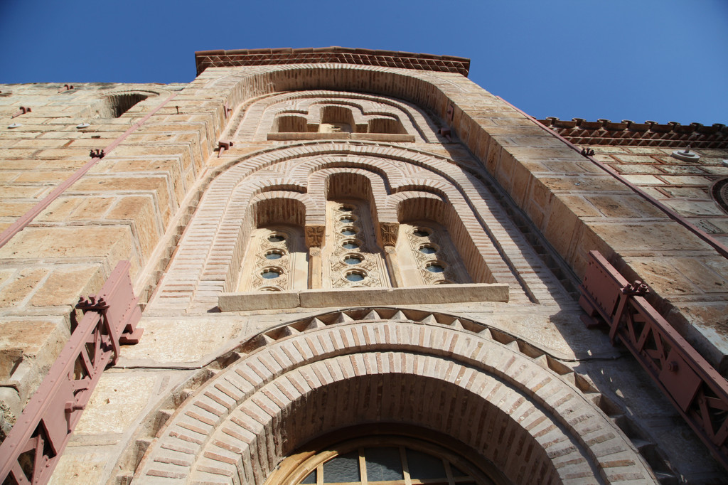 在西边正面有三道拱门的门廊在13世纪有法兰克修士建造,明显受西欧艺术的影响,在前厅和外前厅的上方建造了第二层,从北墙塔楼上的螺旋梯可以到达。这大概是作为修士们的图书馆使用。教堂的墙是简朴的石墙,没有什么装饰。在前厅之下有一个地下室。西边的礼拜堂在18世纪建造。