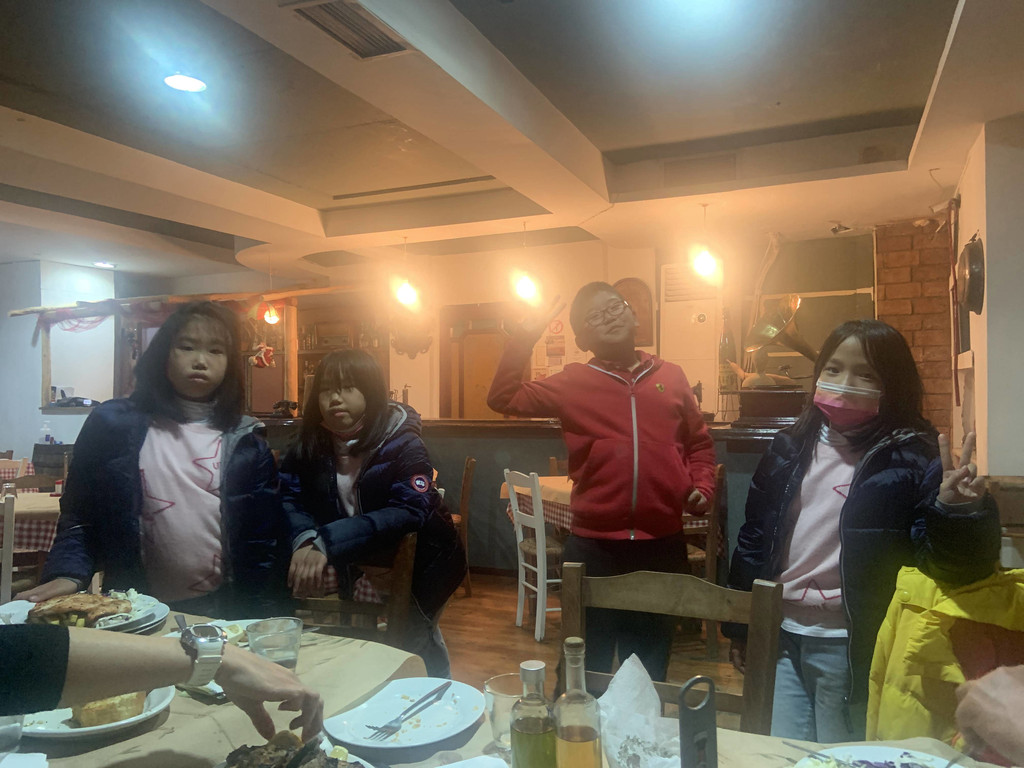 晚上,我们挑选了一家有趣的餐厅,特色就是老板的儿子(10岁左右)亲自接待客人。在询问了我们的疫苗接种免疫证书和少儿自我申报记录后,小老板亲自领我们进入室内就餐。