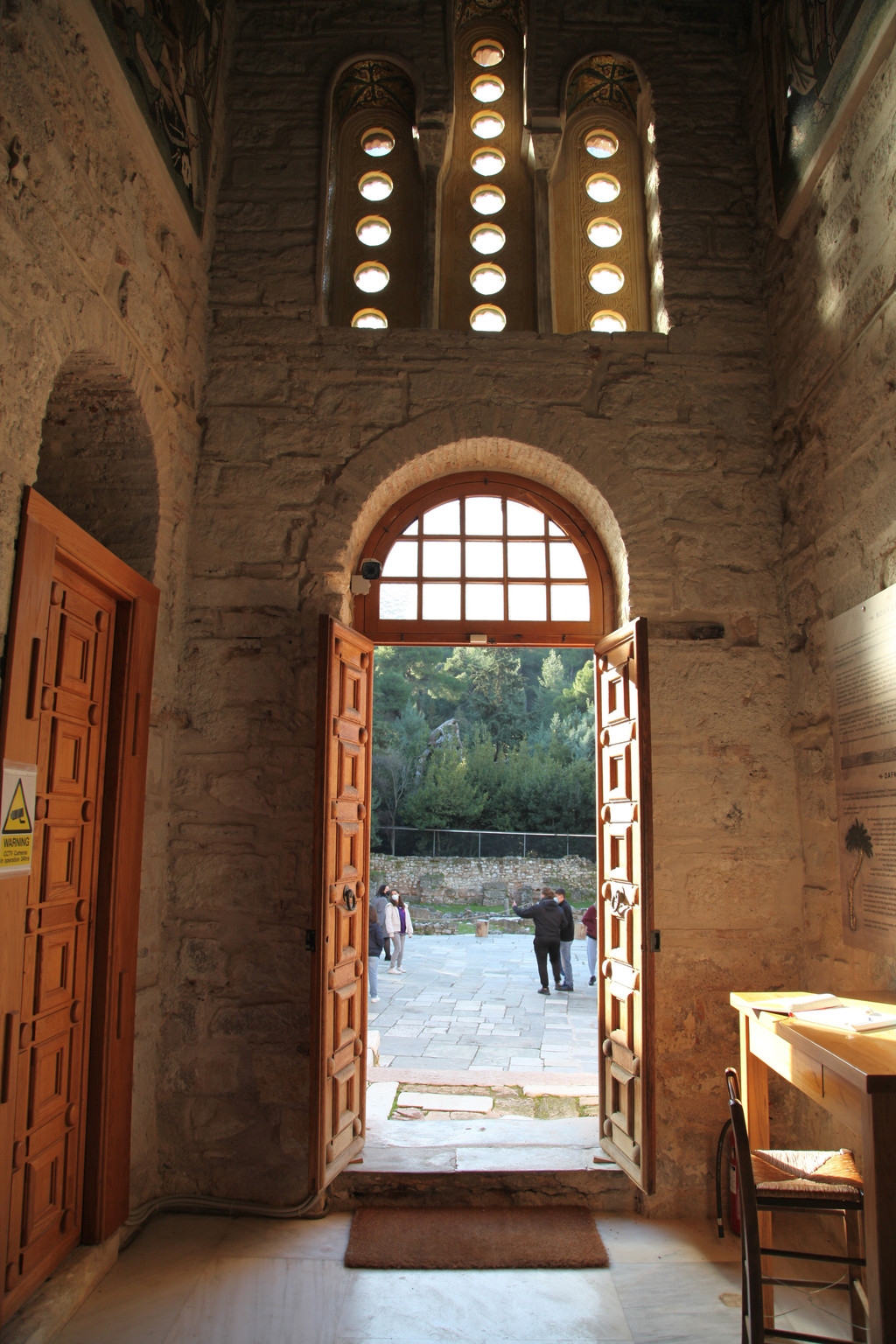 我们此次自驾游的第一站,就选在雅典市西北郊距离雅典市约16公里的达芙妮修道院。这座具有1500多年文化与宗教血脉的修道院,以其古老的拜占庭风格的艺术建筑和精美的镶嵌壁画,1990年被评为世界文化遗产。