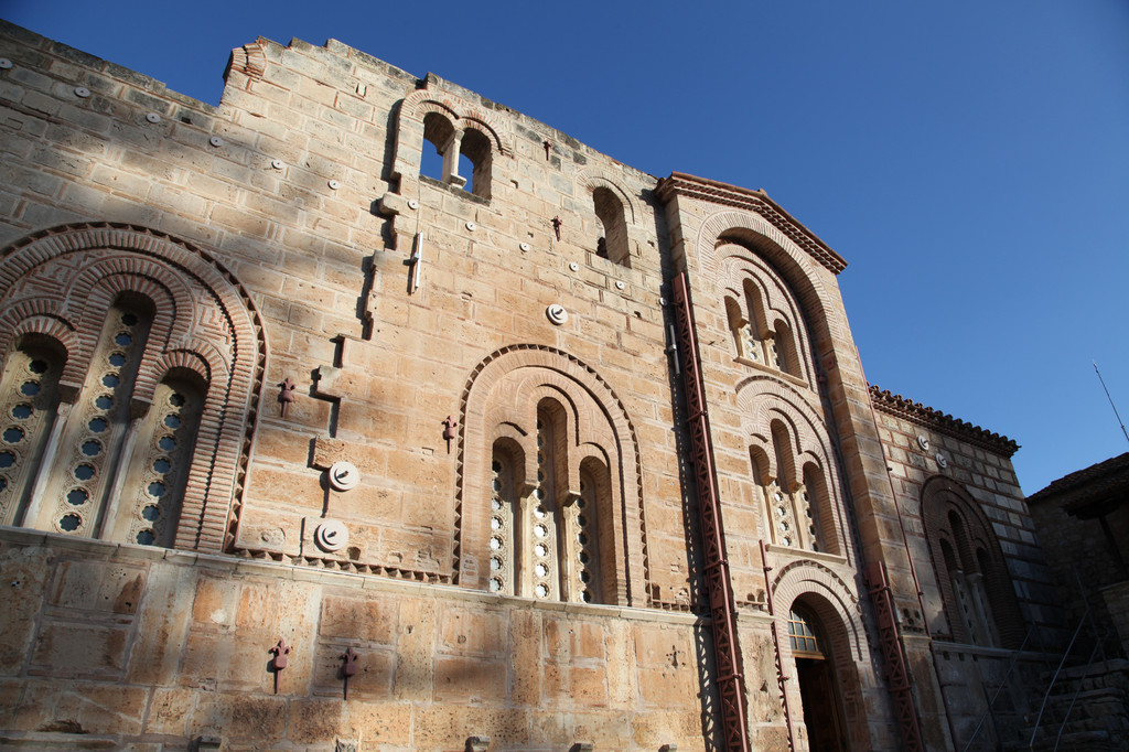 由于它的财富和名声,在11世纪的时候遭到十字军洗劫。在11世纪末,一位爱心人士自愿捐助出钱重建了修道院,教堂有两个正方形交叉构成八边形,有一个又大又宽的圆拱屋顶。它的前厅利用了古代阿波罗神庙的爱奥尼柱廊,教堂内部装饰有精美的镶嵌画,是拜占庭中期艺术的典范,丰富的场景讲述了耶稣基督和圣母玛丽亚的故事。其他的人物有大天使、先知、圣徒、殉教者以及主教等。这些装饰在穹顶、十字架、圣殿和外前厅等处的位置安排都表现了一个理念,中殿表示世界、穹顶表示天堂,地板表示大地。所有的镶嵌画都使用了金箔为底,墙的下端装饰着美丽的大理石板,在1650年左右,大理石板代替了原来平庸的壁画。在教堂的北面有一座带后殿的圆角矩形建筑被用作食堂,墙上有丰富的壁画。
