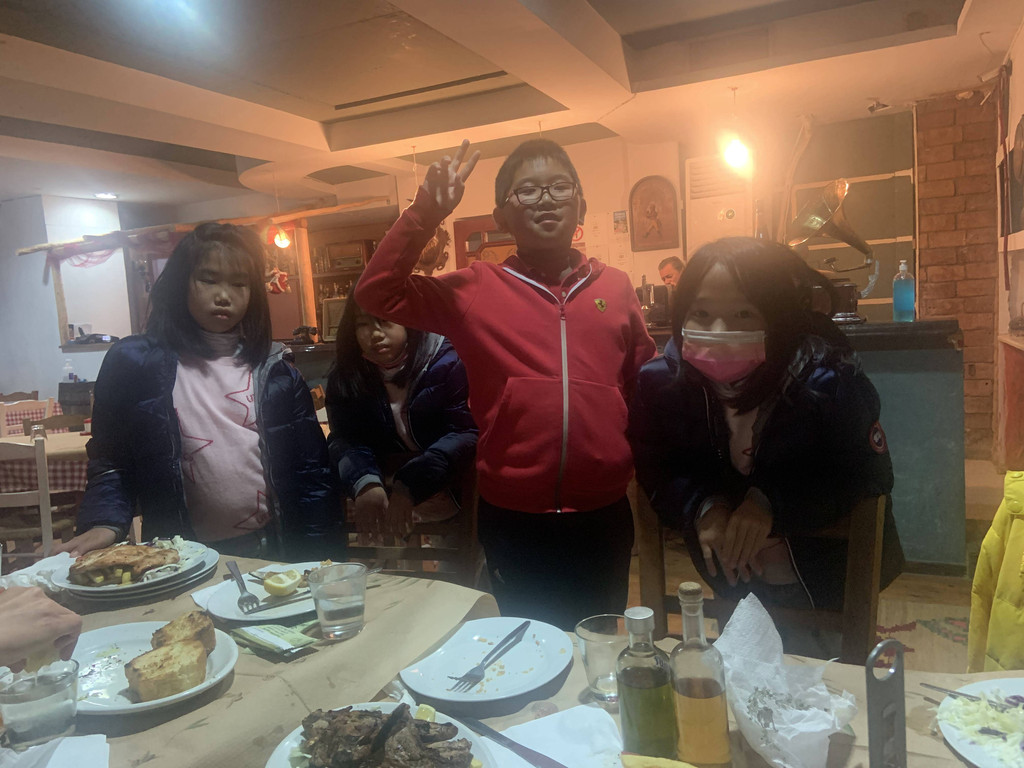 看着和Keith几乎一样高的小老板,我问他:“Are you the boss?”, “Yes.” 小老板大方地回答我。大家点了许多菜,美美地吃了一顿晚餐。吃到一半,老板娘带着儿子先回家了。不到十分钟,小老板的弟弟来接班了,大概8岁左右,和哥哥长得很像,大概是刚补课完回家来帮忙的,背着书包进来,放下书包就开始接待客人了,从小就这样接受生活的历练,怪不得希腊的孩子都很独立。