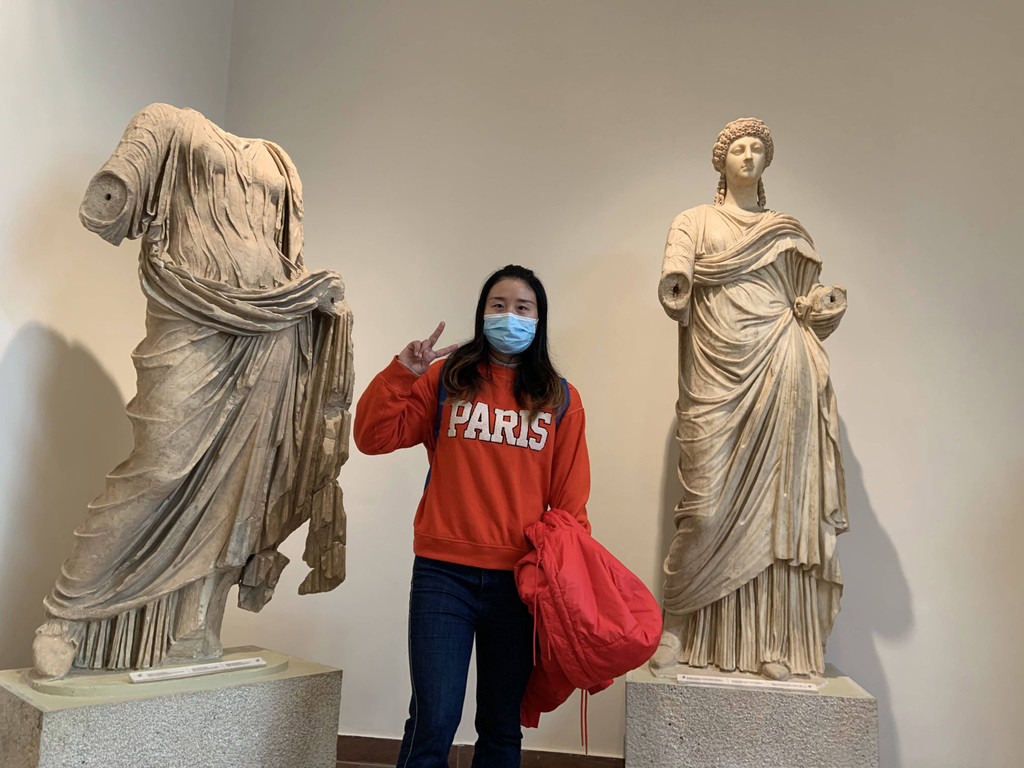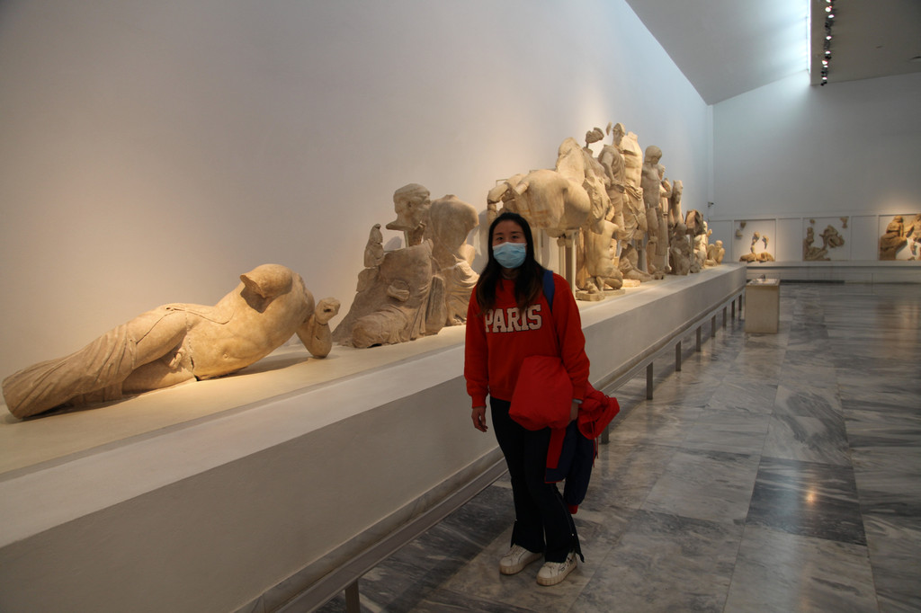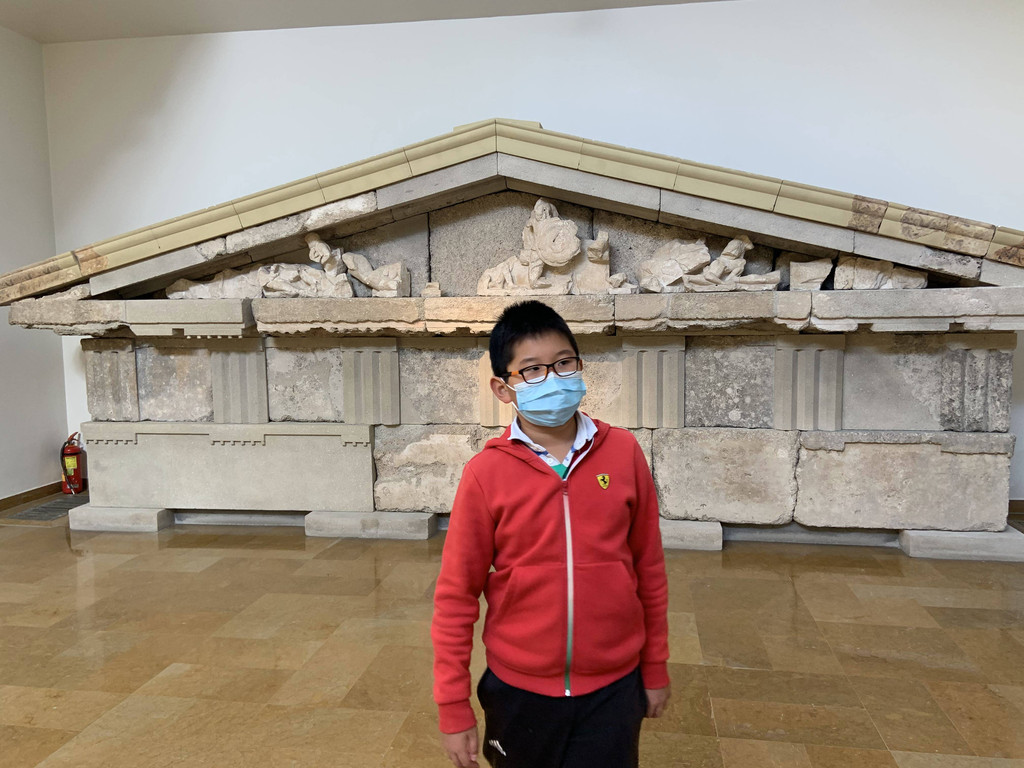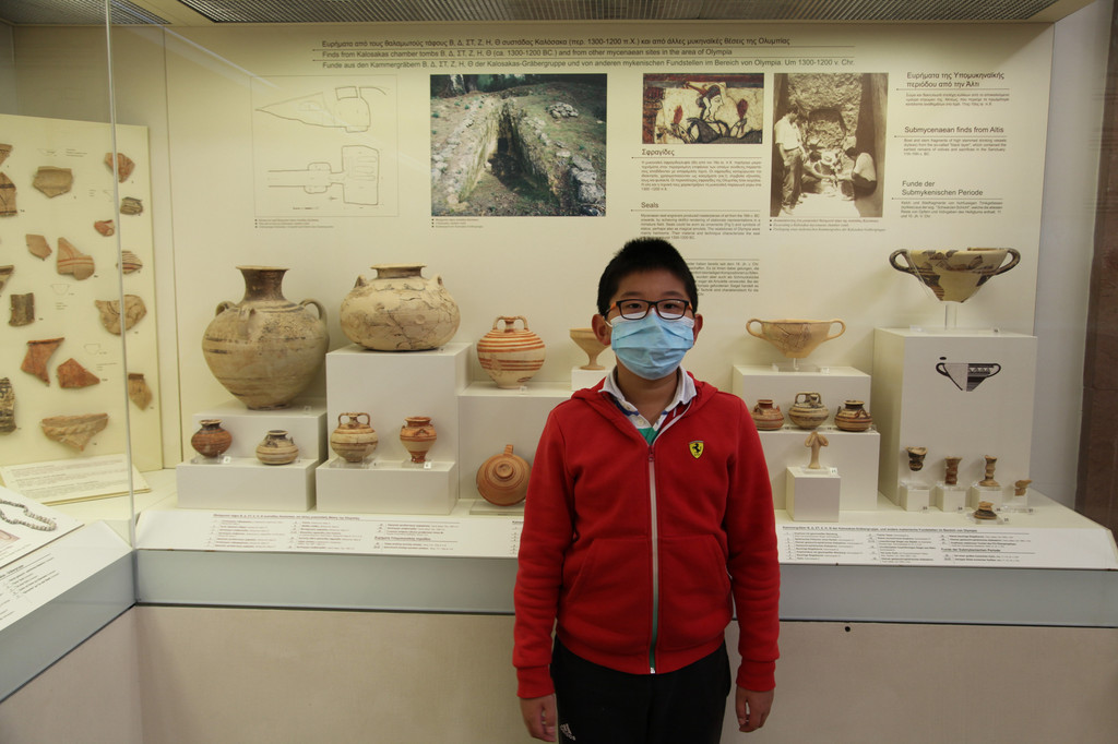 我们先去了奥林匹亚考古博物馆参观。里面展示有许多出土的远古时代奥林匹克体育相关的文物陈列,以及介绍该地区人类文明的起源演化史。