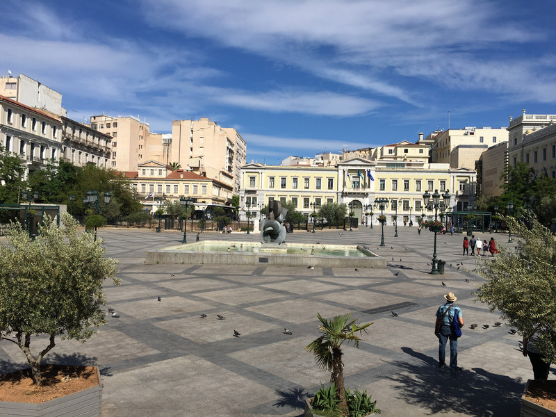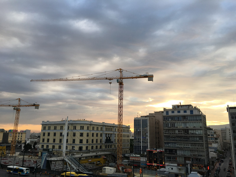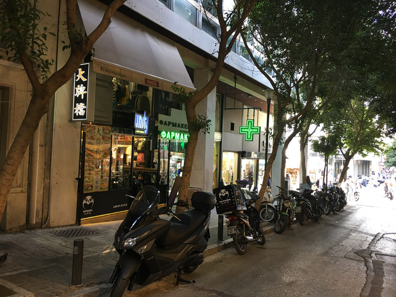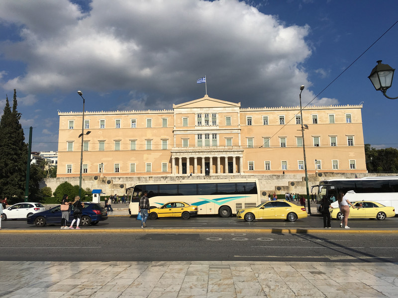 第一次乘坐波音747高鼻客机。 到达法兰克福机场。 转机时间不足1.5小时,很快乘坐第二程飞机飞往雅典,除了我和LP就没有中国乘客了。达到雅典机场提取行李后,出门就是机场巴士售票处,购买6欧/人,坐X95从机场到宪法广场底站,下来GOOGLE MAPS导航步行10分钟就到预定的普瑞亚酒店,很方便。