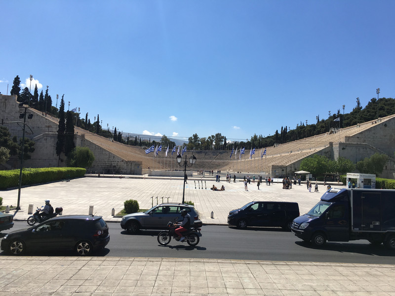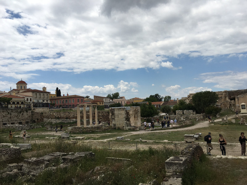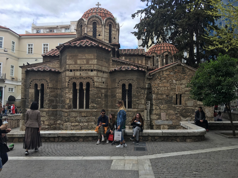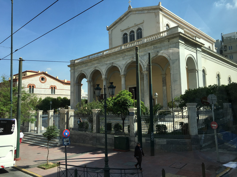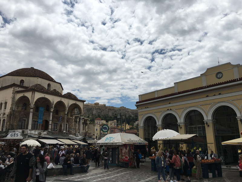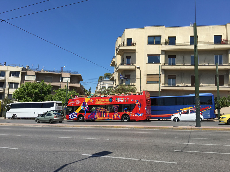 顶上有钟的黄色小房子里面就是地铁1号线和3号线交汇的Monastiraki站,后来我们也是在这站坐地铁去Piraeus码头的。第二天,使用了在国内购买的“【中文讲解器】希腊雅典随上随下观光巴士票(24小时+免费赠1天)”(125元/人),现场任何站点可以换票,非常方便,途径主要景点。