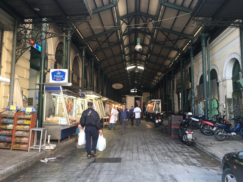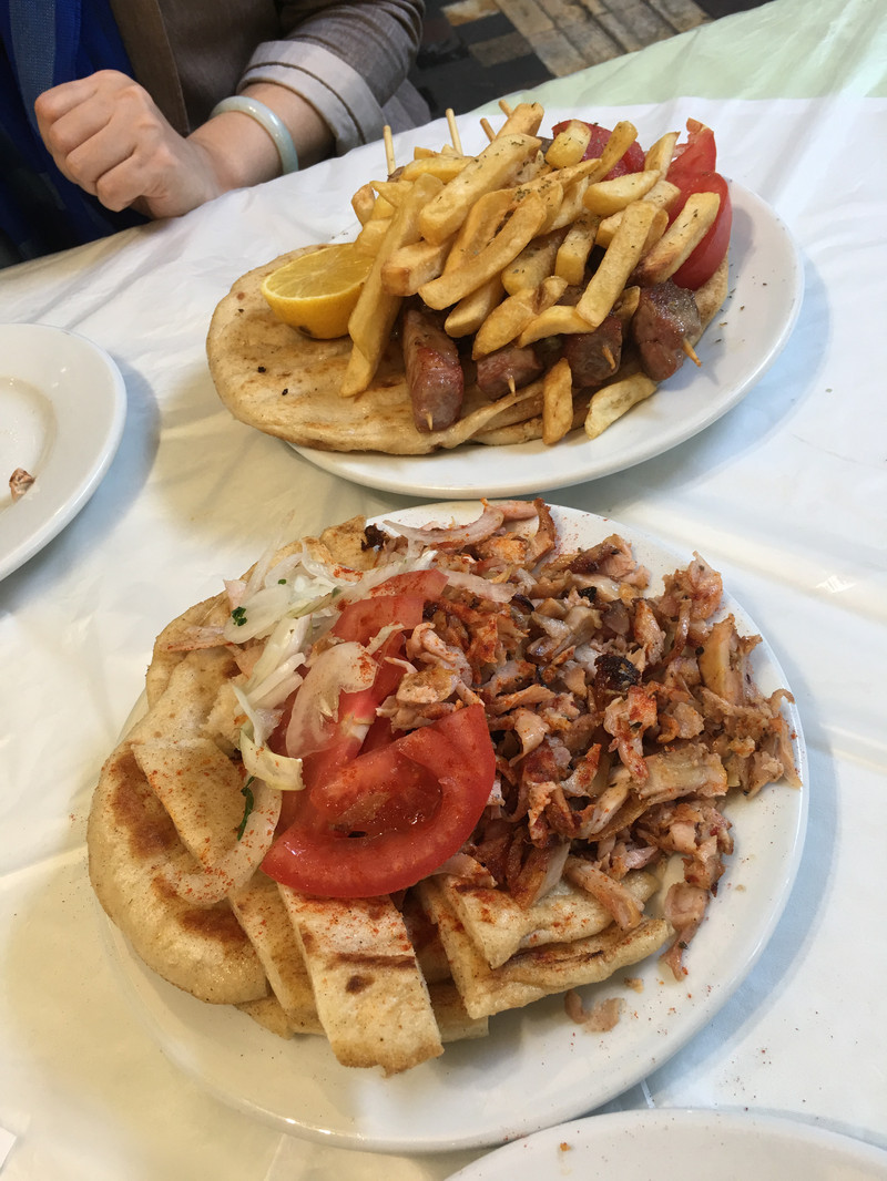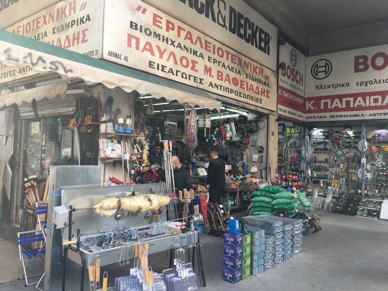 雅典菜市场 卖肉的摊位 类似于国内的南北杂货店 路边的小五金店谈谈雅典的饮食,相信是很多朋友关心:)口味比美国更适合国人,所以我们只吃了一顿中餐,其余均为当地菜,人均主食10欧/人。