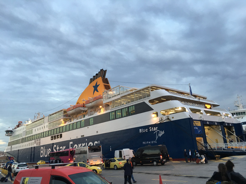 船票316元/张,按照标注的GATE去乘就行了,但是码头很大,8个GATE间要靠摆渡车,BLUE STAR的船一般停E7,离地铁站最近、最方便。 跟着人流排队上船 经济舱没有固定座位,早点上船挑个好位置,餐厅、甲板随便坐。我们的船是慢船,船上还有商务舱、包厢卧铺,毕竟7个小时船程了,有需求可以花钱享受一下。不过我觉得经济舱睡一觉,甲板逛逛、吃点东西,时间很快过去啦。船有8层,上船有行李房,也可以带在座位边上,6层以上是客舱、甲板。攻略上说还有一种快船是要4个小时,但是封闭式的很颠,不建议乘坐。
