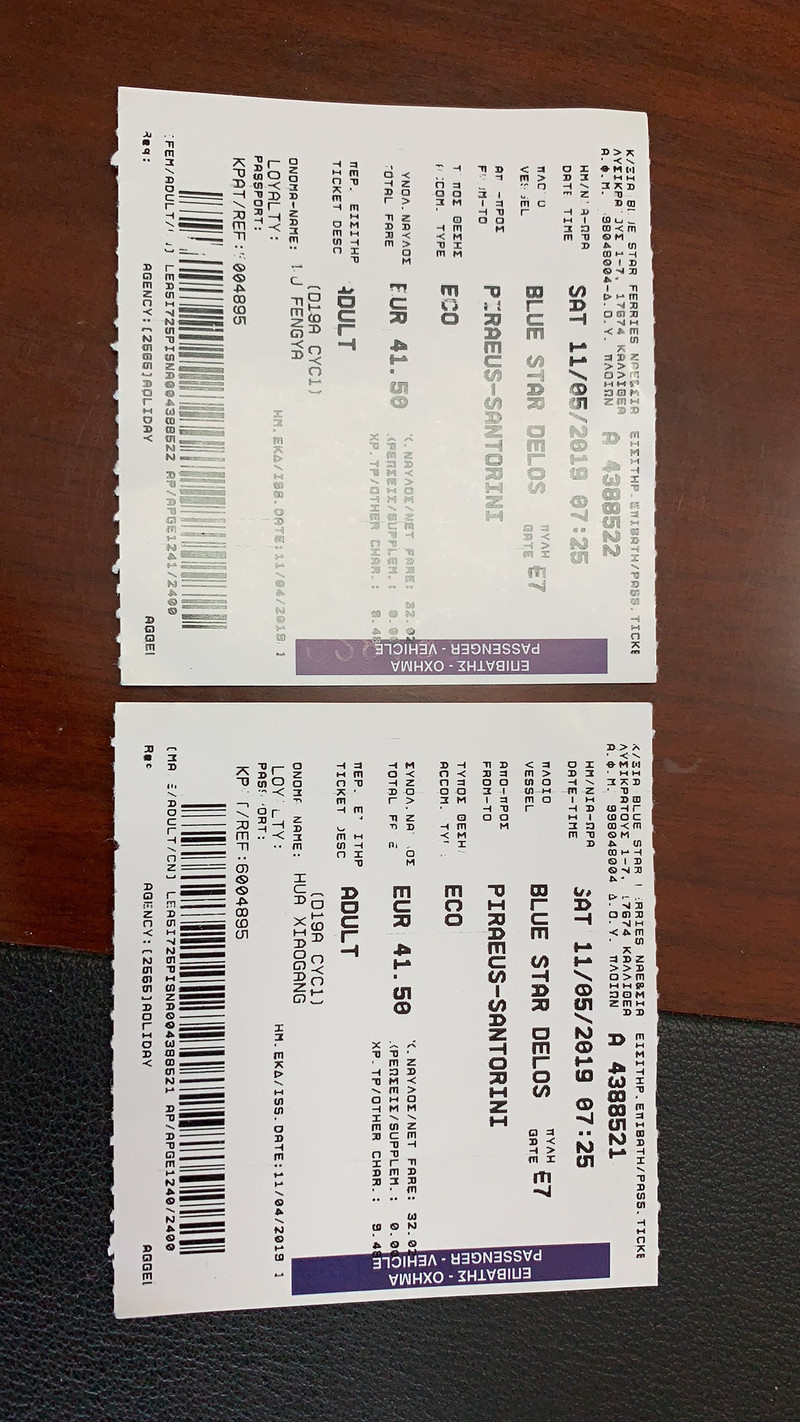 航班信息,自认为还是合理轻松的。欧洲游签证是大问题,申根签证办理相对麻烦且费用高(携程898元/人,含签证费和服务费,保险是在支付宝蚂蚁保险购买的要覆盖申根国家),还只能只用一次,一般都提前三个月左右办理,还要亲自去上海交材料录指纹(下次就不用了)。但是我4月6号预定签证时离出行只剩1个月了,所以携程回复说需要15个工作日,最早只能5月9号出发。这时我的自信心起了作用,之前有过申根签,还有有效的美签,问题肯定不大。4月8号一天准备齐材料寄给携程,4月11号去上海希腊签证中心录指纹递交材料,4月24号顺利出签,4月25日拿到护照,检查完后确认无误,开始预订附加产品,在行程中再详细介绍。通讯问题,购买了15天的欧洲电话卡(65元/张),2G流量+500分钟欧洲通话,7天使用差不多,主要是刷微信和导航。
