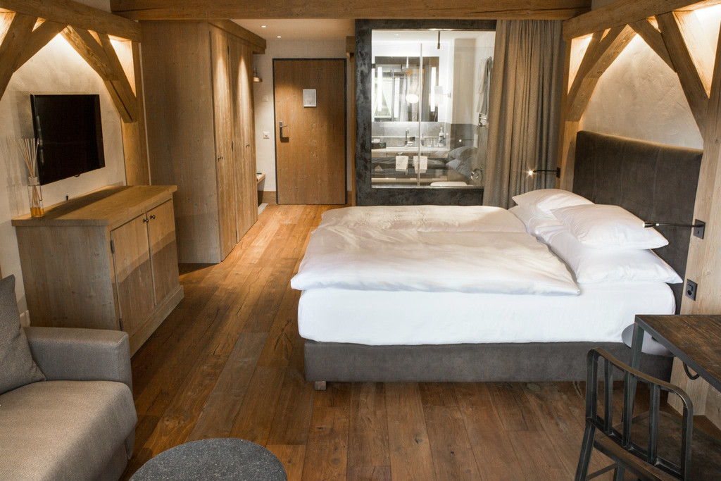 其宽敞漂亮的客房采用现代/传统瑞士木屋风格,木质家具散发着原木清香,营造出轻松舒适的度假氛围。
