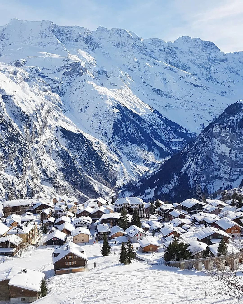因007系列影片《女王密令》雪山打斗场面的取景而名声大噪的雪朗峰,是瑞士非常热门的冬季旅游目的地,而山脚下的美丽小镇米伦(Mürren)往往会成为理想度假选择。冬天的米伦是真正的童话小镇,绵密的积雪覆盖房顶和山峰,整个村庄静静地坐落在雪白的大地上,一片片飞舞的雪花把村子变成白色的童话世界。