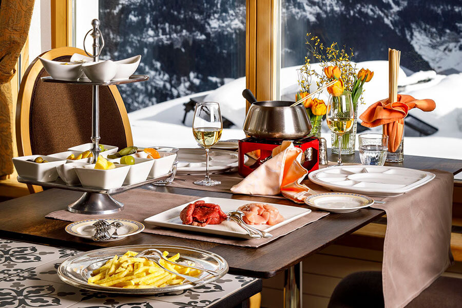 雪橇之旅后,奶酪火锅味道最好!酒店的两家餐厅只选用本地新鲜食材烹制菜肴,多种瑞士和国际特色菜让人大饱口福。