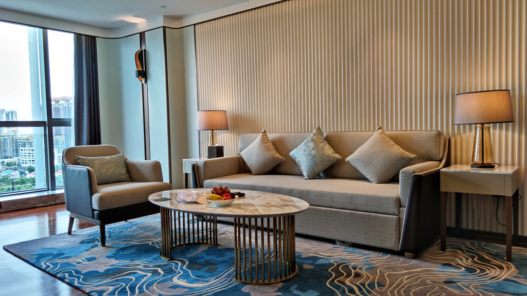 星海楼的房间景观一流,这次我选择入住79平米的湖海景套房,近看九洲湖(30000平方米)和爱心岛(3000平方米)自然生态区一览无余;远眺大海,港珠澳大桥尽收眼底。温馨提示尽量选择高楼层,景观会更棒哦!
