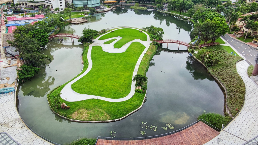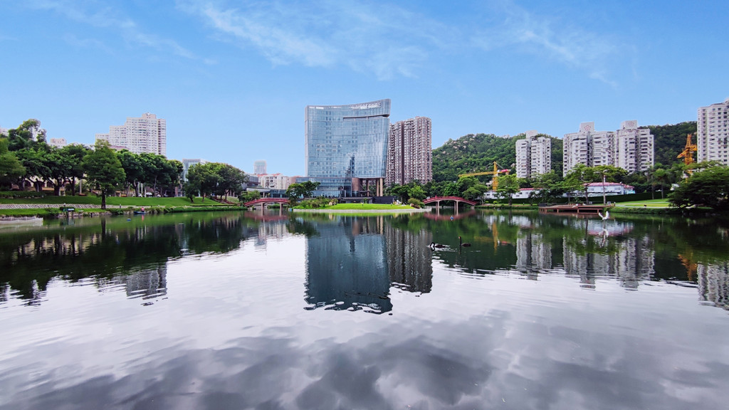 去年八月份和几个闺蜜入住珠海度假村酒店联排别墅的时候,就看到星海楼前的九洲湖正在进行改造。一年过去了,它已经华丽变身为一个颇具诗意的城市休闲景观。
