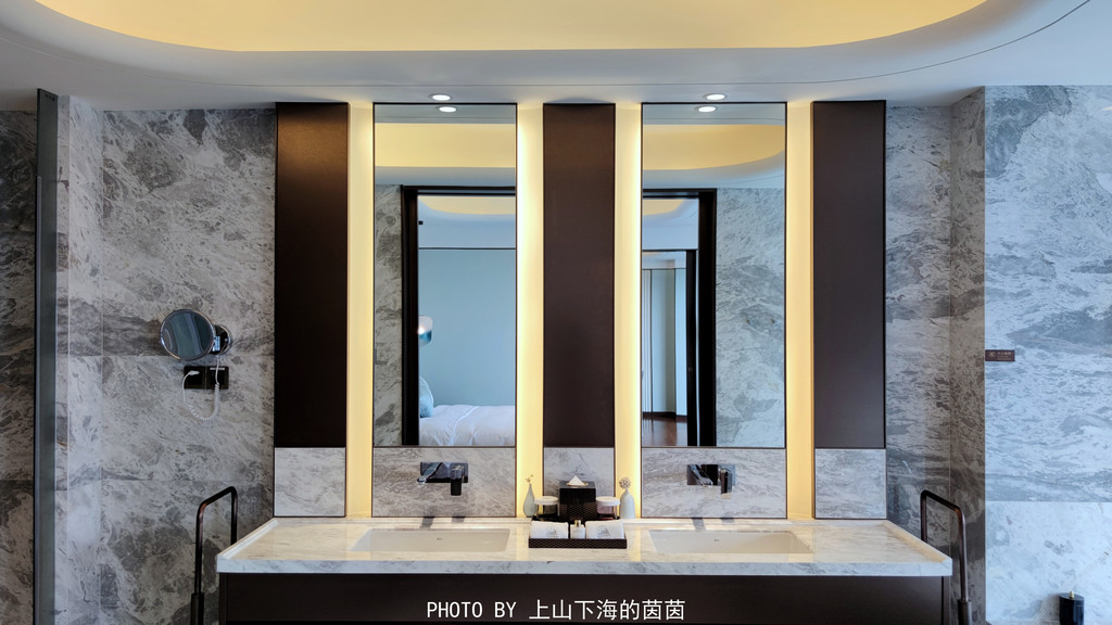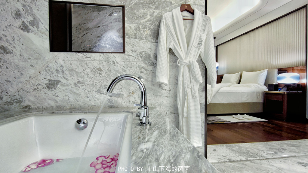 卫浴配套设施使用国际知名ROCA品牌,观景浴缸配备镜面电视机。一边泡澡一边看电视的感觉真好!