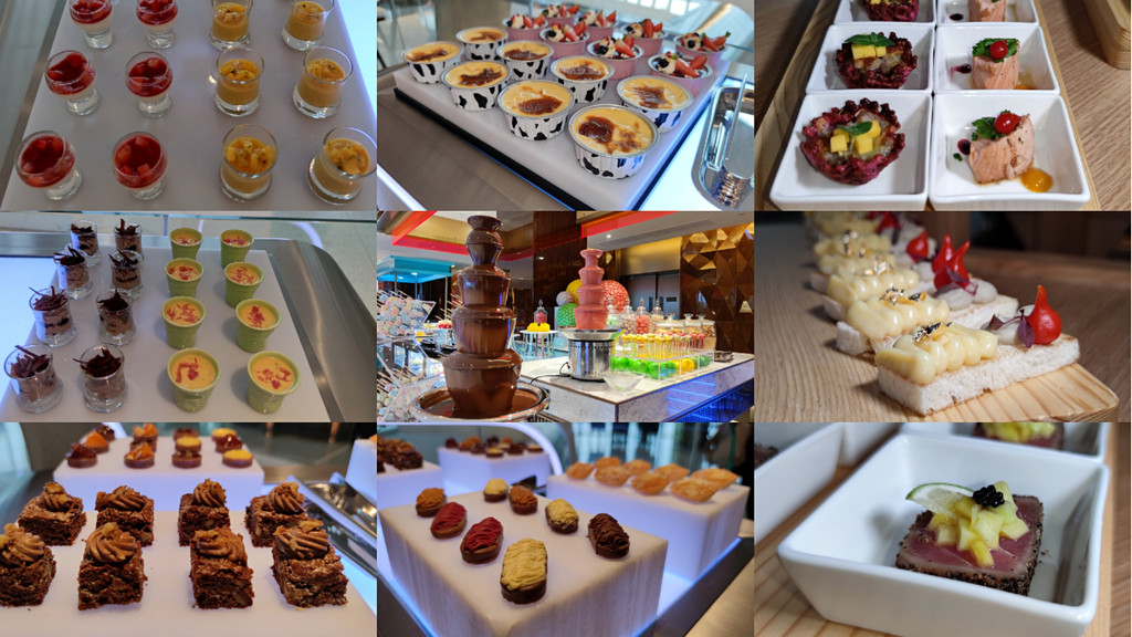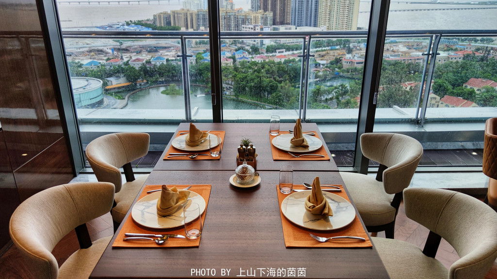 位于星海楼顶层的行政酒廊以“上空之景”为主题,全落地玻璃窗的设计将珠海迷人的海滨城市风光和蜿蜒曲折的港珠澳大桥尽收眼底,整体暖色调的软装让人心情放松。这里不对非住客开放,只给住客提供尊享自助早餐和下午茶服务。不得不说,在这里一边享用精致的餐点一边俯瞰城市全景的感觉超棒!