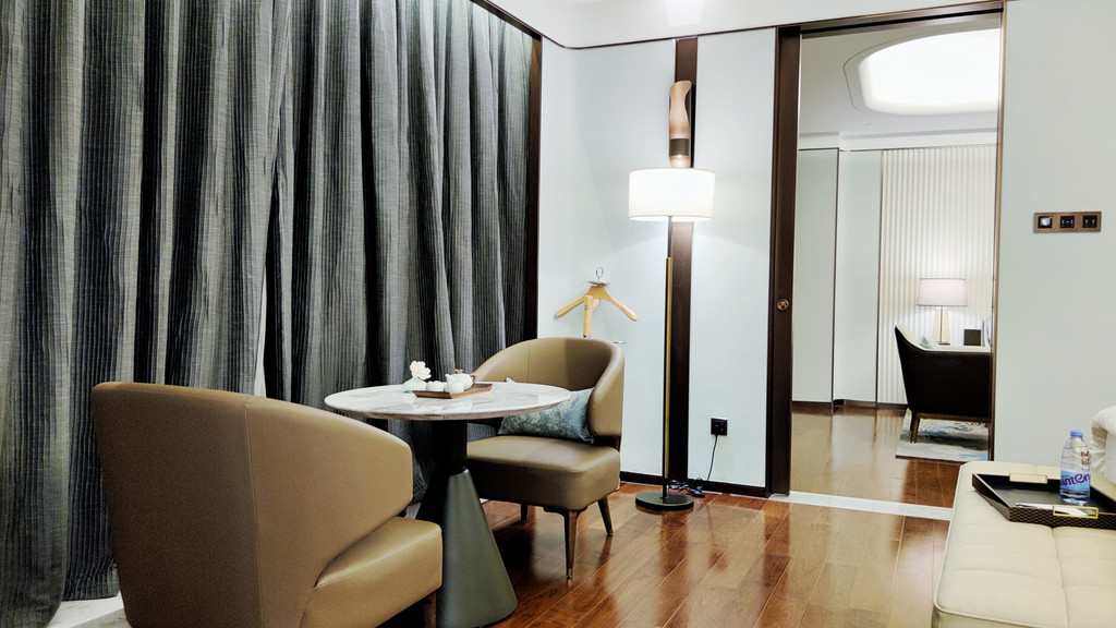 如果说觉得大堂吧人来人往不够私密的话,那么可以挪步到二楼的户外观景平台走廊小憩,这里同样有中式茶水、鸡尾酒、鲜榨果汁、软饮、咖啡、气泡酒、红葡萄酒、白葡萄酒等各种饮品,当然下午茶套装也很值得一试!