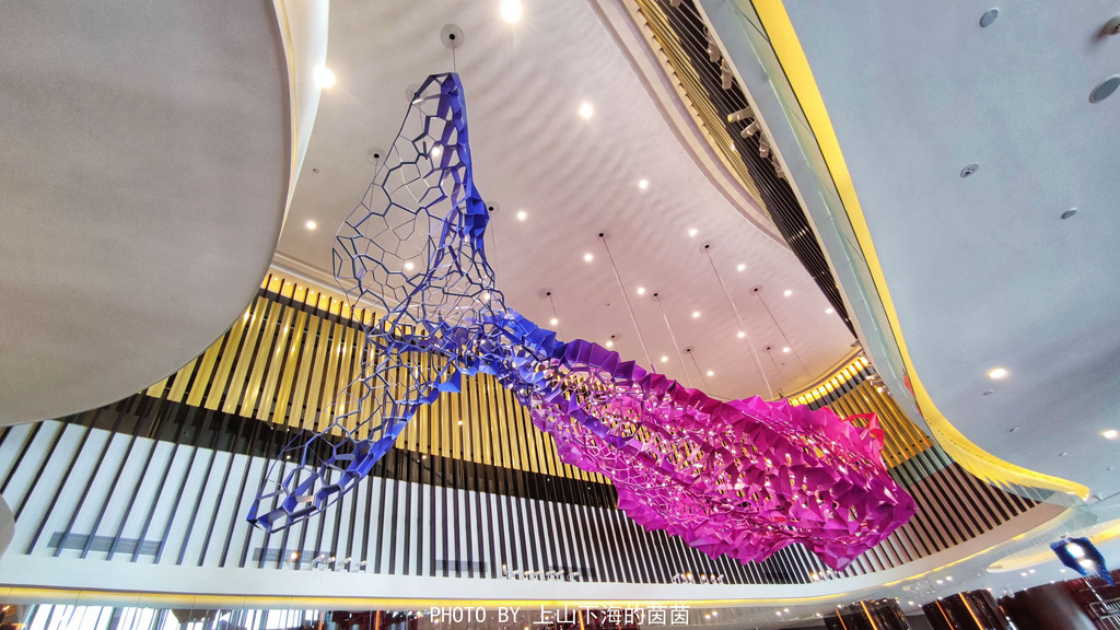 头顶的巨大镂空鲸鱼灯超有设计感,在不同的角度都会有不同的观感。