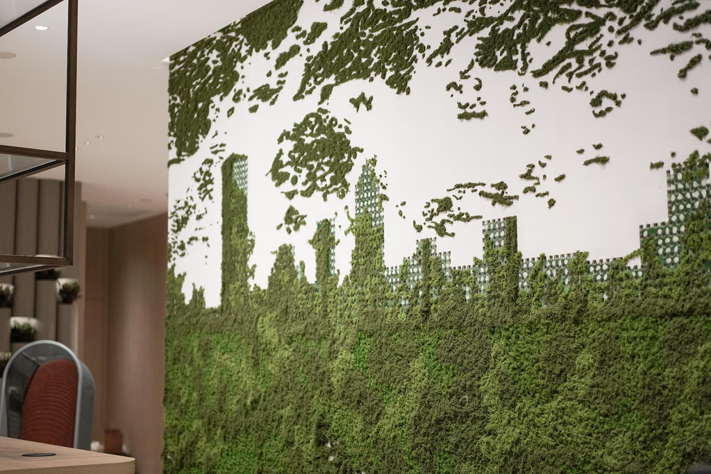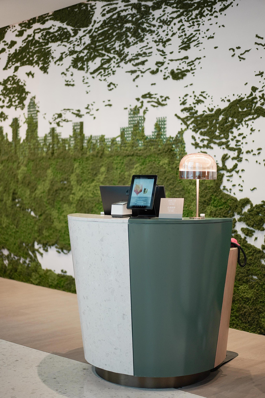 前台后是一幅大型的木制设计画,仿真绿植所构成的生机勃勃的中山城市建筑图,让人一眼便能感受到中山这座城市的生机勃勃与活力,更能感受到酒店品牌独有的调性。酒店设计在体现品牌独有平衡调性的同时,还运用了时尚的设计元素和传统文化元素,中山老街、地标建筑、五桂山、岭南陶土花窗等富有地域特色和历史意义的元素巧妙融入,打造出雅致舒适的旅居环境。