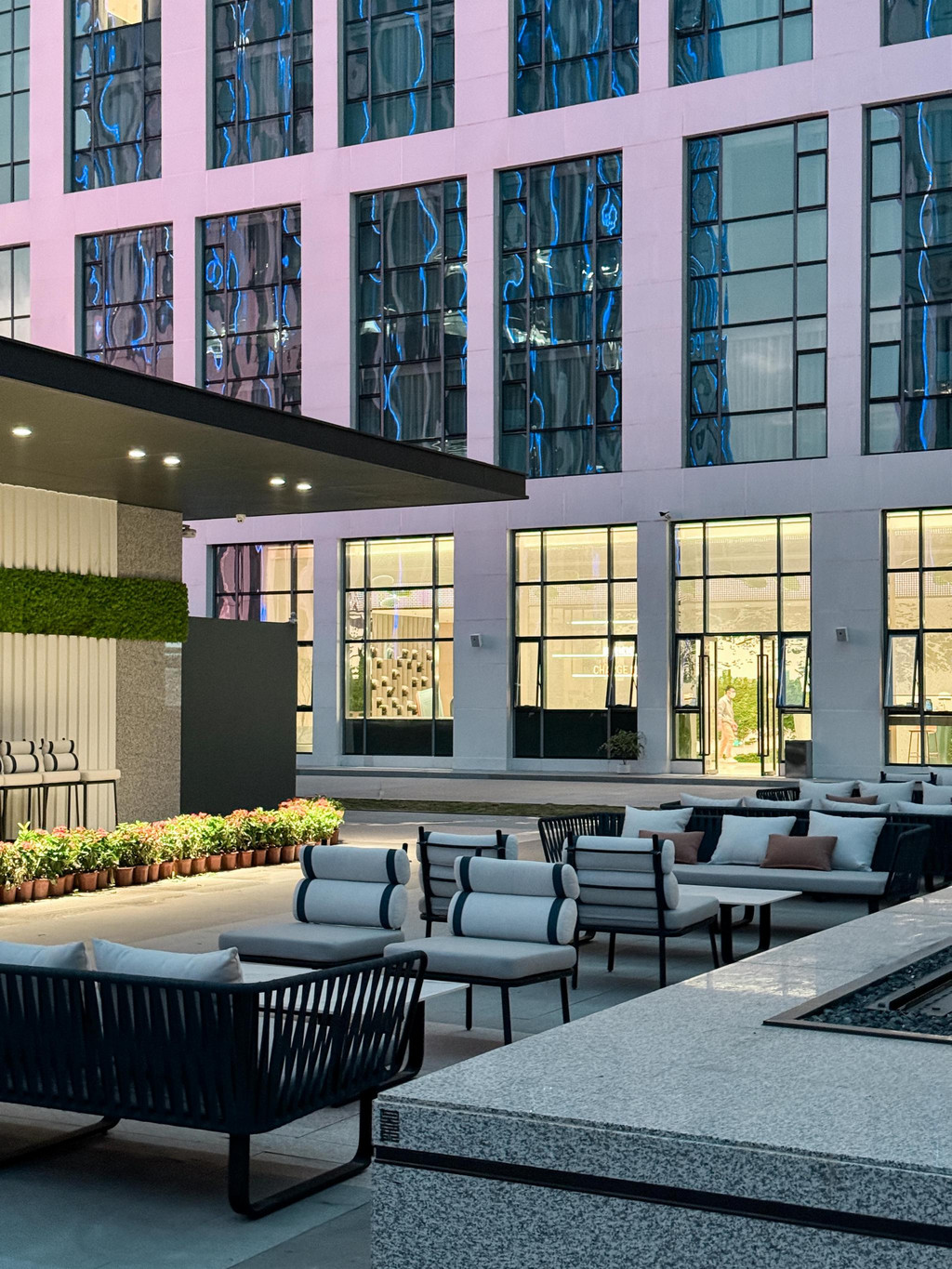 一进入酒店5楼大堂,就被酒店的设计所吸引,以逸动香山为灵感,将中山城市探索融入酒店设计理念中,几何线条色块的拼接,极具几何空间美学的美感,让人感受到独特的现代氛围,以及健康与活力。