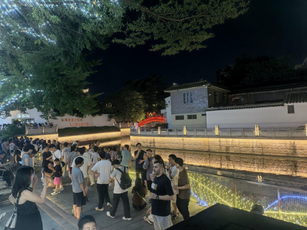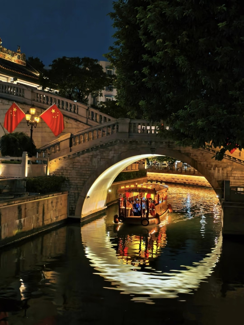 坐落在广州十三行旧址上的永庆坊,是明清对外通商与文化交流的重要口岸,也是广州海丝的起始地。网红月亮桥真名是叠月桥,正好今天是中秋,桥的灯光和水中倒影连接成水中月,相当漂亮,是永庆坊相当出名的景观。永庆坊木棉花大墙,永庆大字绿植墙,林俊杰同款走起~