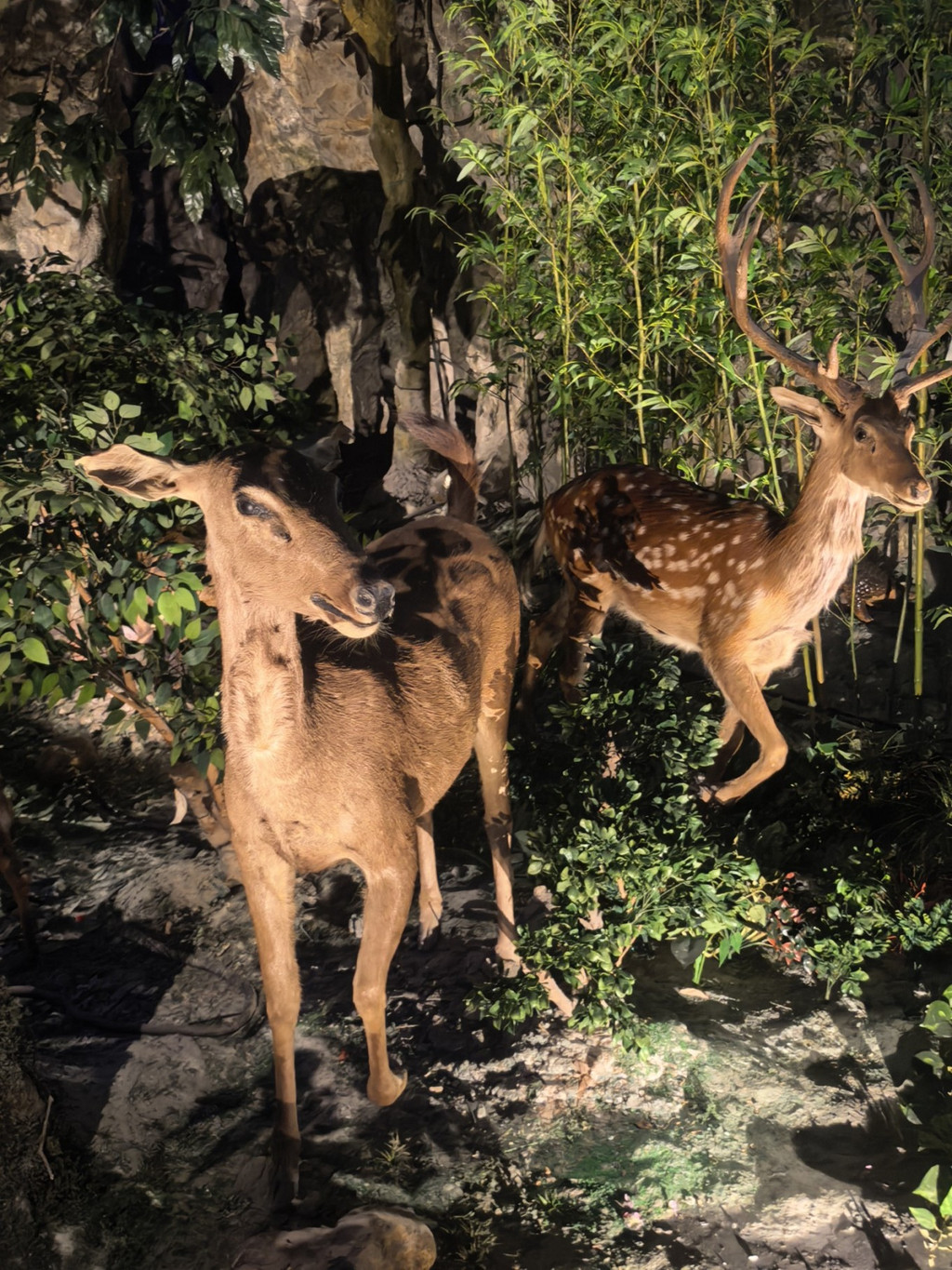 中草药馆通过百余件标本(植物纹理好美,如同艺术品)展示岭南道地药材,了解陈皮、佛手、穿心莲等独具特色的“南药”,通过广东医事等场景使观众了解广东独特的中医药文化。陆生野生动物馆采用了场景的方式融合,很逼真!感觉像带鑫崽逛动物园了!